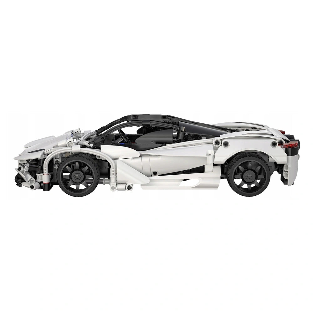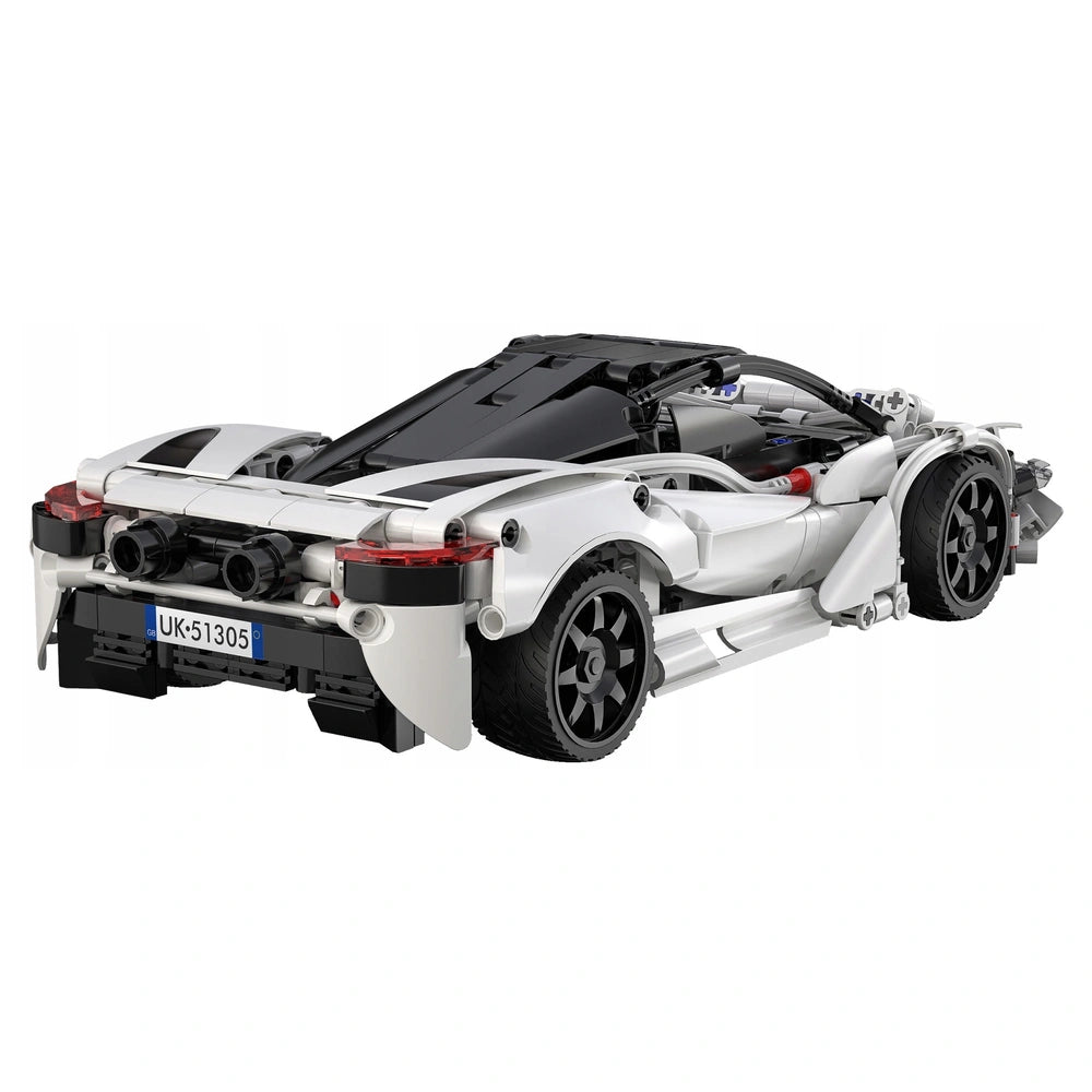 La Voiture de Sport Storming (Modèle C51305W) de CaDA Bricks est un véhicule détaillé de 30 cm de long avec une carrosserie blanche et des accents noirs frappants. Il est fabriqué en plastique durable de haute qualité et équipé de quatre roues en caoutchouc, lui permettant de naviguer en douceur sur diverses surfaces planes. Le modèle comprend des pièces mobiles fonctionnelles, telles qu'un capot ouvrant, et atteint des vitesses allant jusqu'à 5,5 km/h. Cet ensemble offre un défi de construction gratifiant avec des instructions claires et étape par étape qui guident les créateurs à travers l'assemblage de systèmes mécaniques complexes.