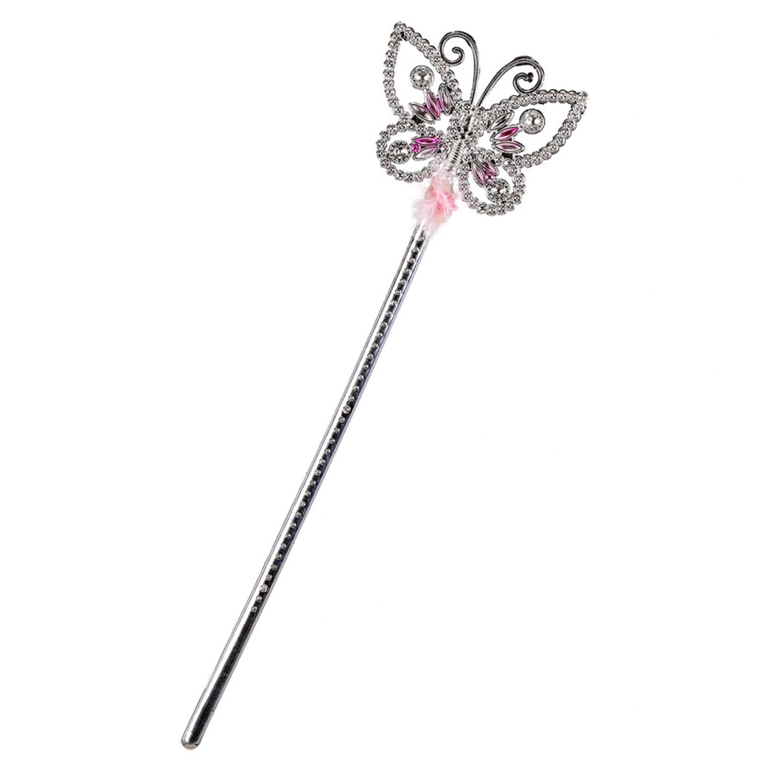 The wand's design features a shimmering silver finish that catches the light beautifully, while the pink gems add a touch of elegance and charm. This eye-catching accessory is suitable for various occasions, including birthday parties, Halloween, or any festive celebration where dressing up is encouraged. It complements a range of costumes, from fairies to princesses, making it a versatile addition to any dress-up box.