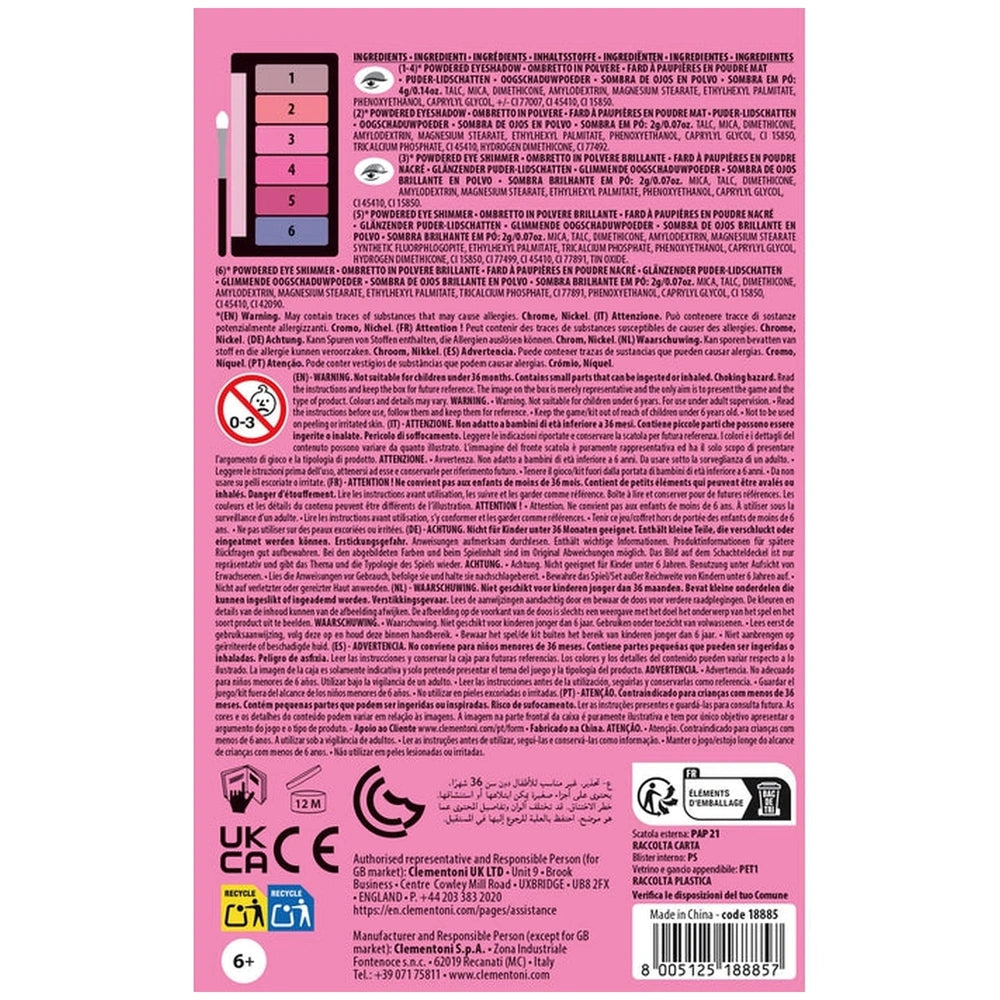 Designed, developed, and manufactured in Italy, this palette reflects high-quality craftsmanship and attention to detail. The compact dimensions of 9.5 x 15 x 1.6 cm make it easy to carry in a bag or backpack, ensuring that your child can always have their favorite makeup at hand. Weighing only 92 grams, it is lightweight and perfect for travel or playdates.