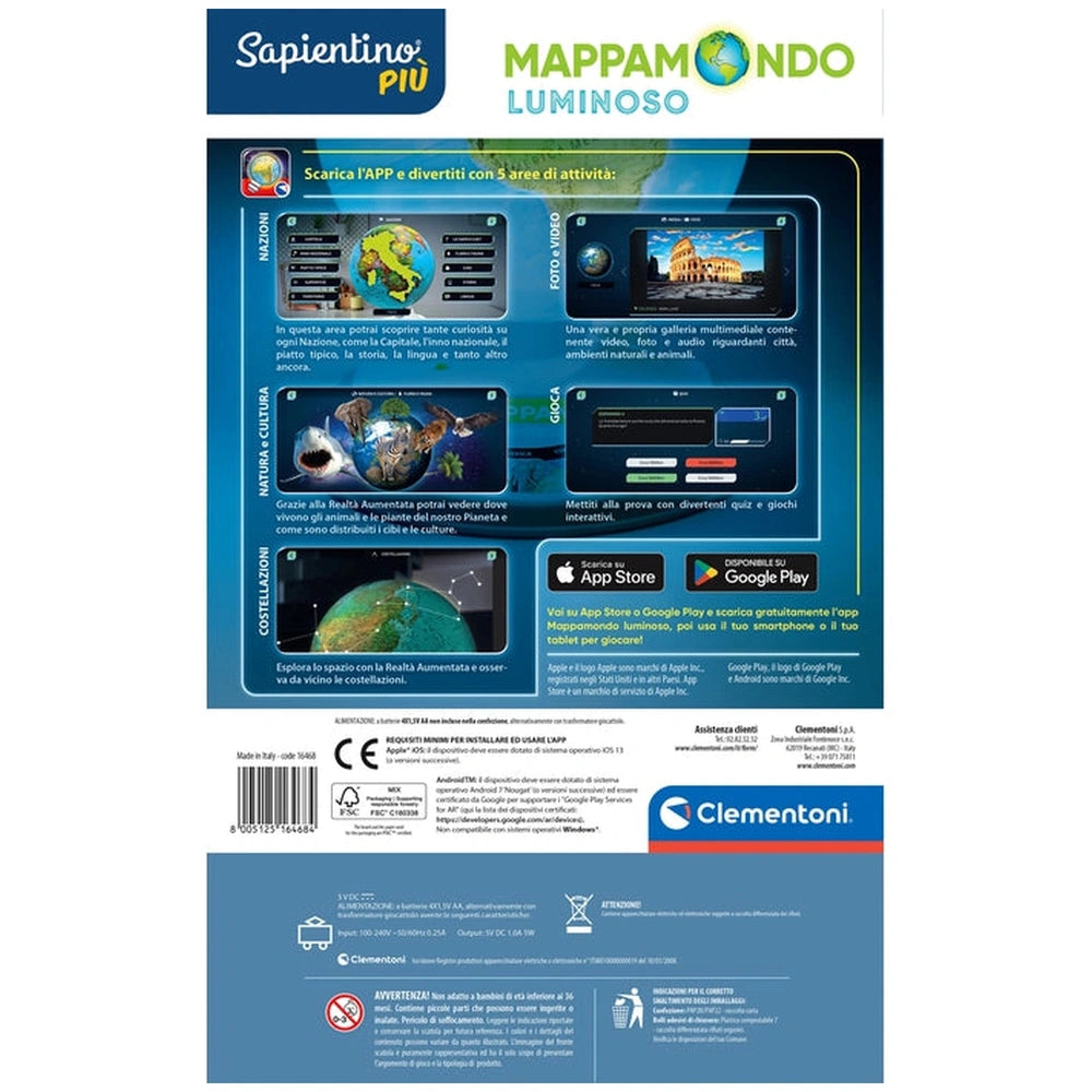 Clementoni - Mappamondo Luminoso Jouets Éducatifs - Édition Italienne