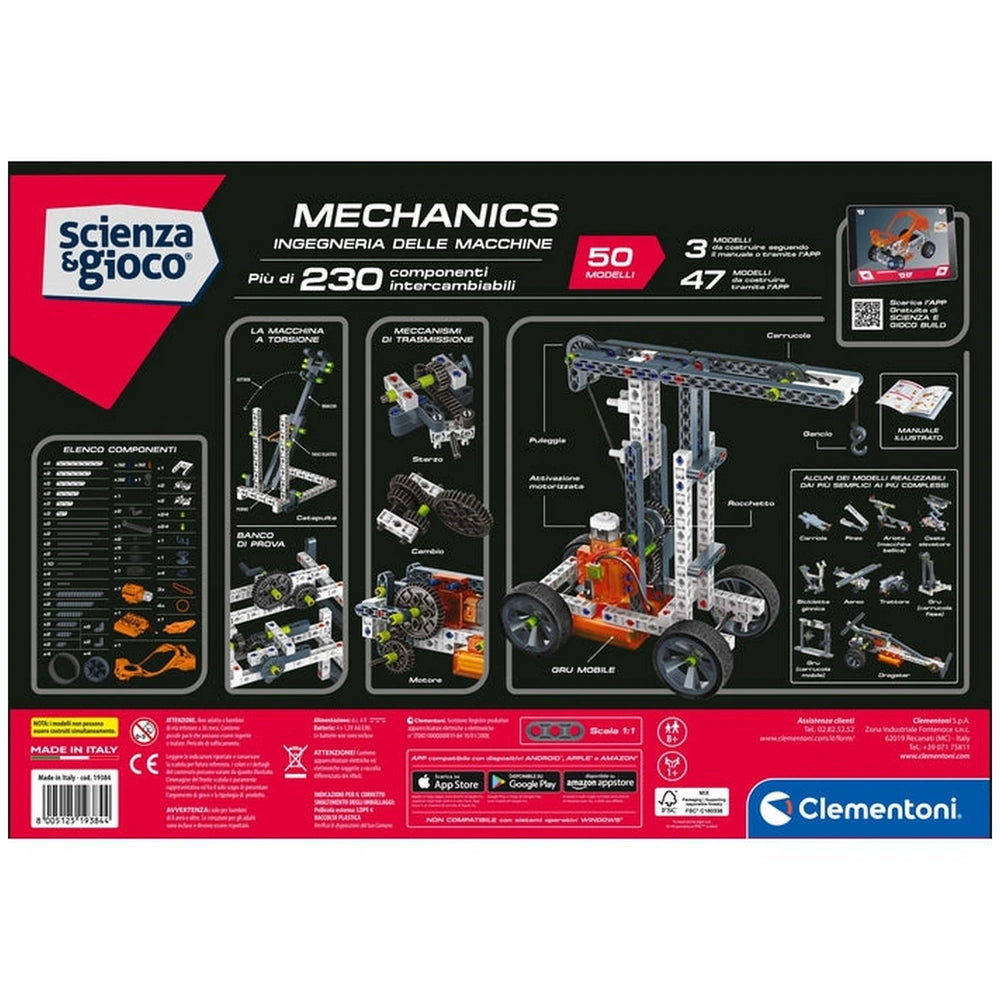 Introducing the **Clementoni Scienza E Gioco Build - Mechanics Build 50 Models**, a remarkable construction set designed to ignite the curiosity of young minds while providing an engaging introduction to the principles of mechanics and engineering. This comprehensive kit is perfect for children aged 8 and above, offering an exciting blend of education and play. With over 250 components included, this set allows for the assembly of more than 50 different models, each presenting a unique challenge that fosters creativity and critical thinking.