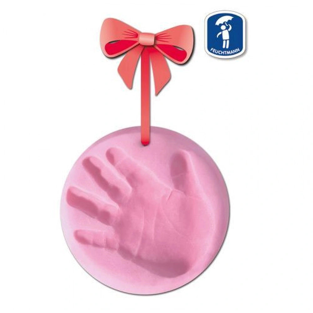 Feuchtmann Infant Art Impression Basic Pack featuring a white object with a green bow and a hand impression on top.