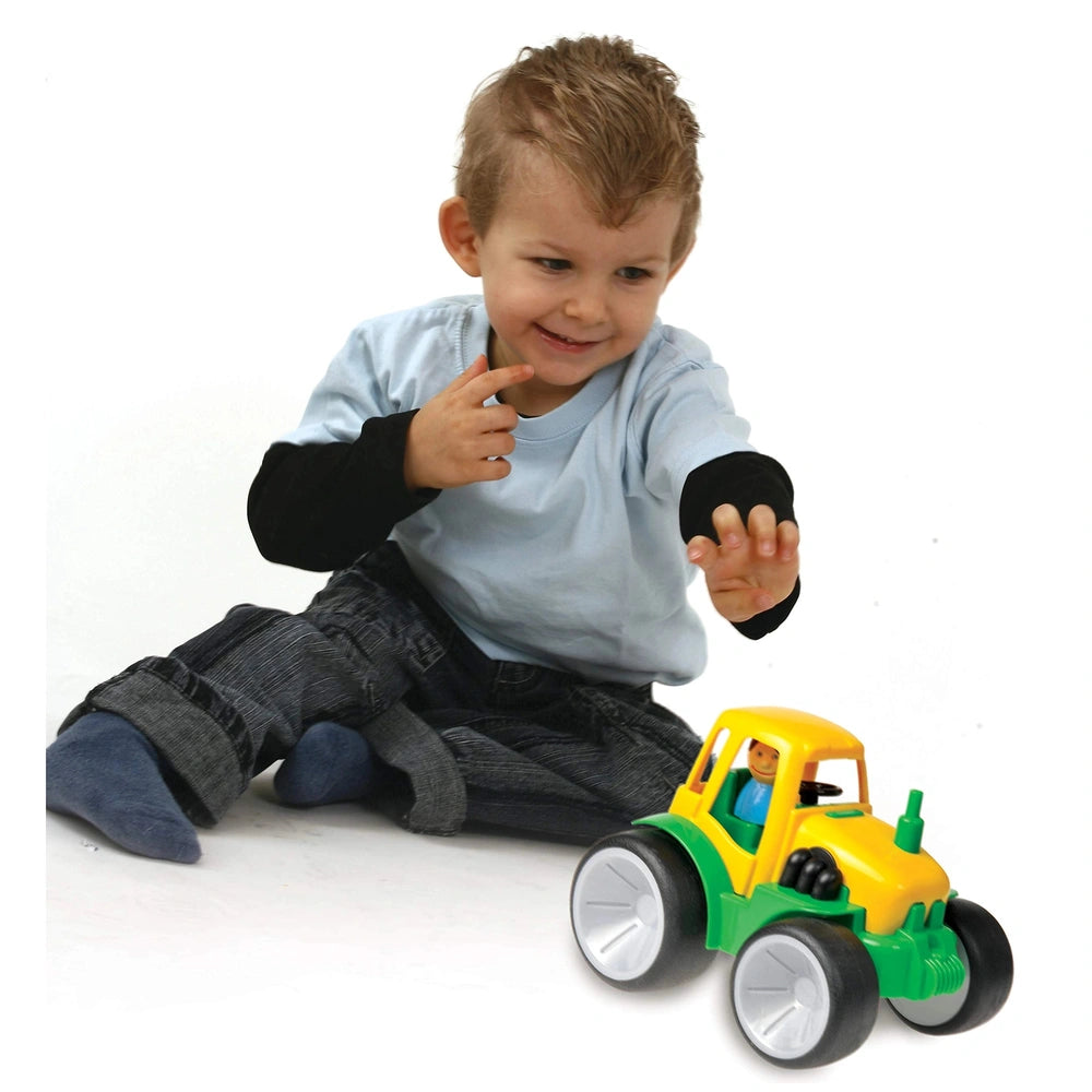 Gowi - Tracteur Sans Pelle - Véhicules de Jeu Découvrez le Tracteur Gowi sans pelle, un véhicule de jeu charmant conçu pour inspirer la créativité et le jeu imaginatif chez les enfants âgés de 12 mois et plus. Ce tracteur est parfait pour les aventures intérieures et extérieures, faisant de lui un compagnon idéal pour les petits qui explorent leur environnement. Que ce soit pour courir dans le bac à sable, naviguer dans un parterre de fleurs ou partir en expédition dans le jardin, ce tracteur encourage les enfants à s'engager dans un jeu actif tout en développant leurs compétences motrices et leur coordination. Conçu avec la sécurité et la durabilité à l'esprit, le Tracteur Gowi présente des bords arrondis et des pneus en caoutchouc, garantissant une expérience de jeu sûre pour les jeunes enfants. Les roues soigneusement conçues permettent une longue distance de déplacement avec juste une légère poussée, glissant silencieusement sur diverses surfaces. Cela signifie que les enfants peuvent profiter d'heures de plaisir sans déranger les autres, qu'ils jouent à l'intérieur de la maison ou à l'extérieur dans le jardin. Les robustes essieux en acier offrent une force exceptionnelle, permettant au tracteur de résister aux rigueurs du temps de jeu sans compromettre son intégrité structurelle. Le Tracteur Gowi est non seulement conçu pour durer, mais il est également fabriqué à partir de matériaux de haute qualité faciles à nettoyer. Les parents apprécieront le côté pratique de ce jouet, car il peut être rapidement essuyé après une journée d'aventures en plein air. Avec des dimensions de 22 cm de long, 16,5 cm de large et 16,5 cm de haut, et pesant seulement 606 grammes, ce tracteur est parfaitement dimensionné pour les petites mains à saisir et à manœuvrer. Son design léger garantit que les enfants peuvent facilement le transporter d'une aire de jeu à une autre, favorisant leur indépendance et encourageant l'exploration. Ce véhicule de jeu est plus qu'un simple jouet ; il sert d'outil pour des récits imaginatifs et des jeux de rôle. Les enfants peuvent créer leurs propres scénarios, qu'ils soient agriculteurs s'occupant de leurs cultures ou ouvriers du bâtiment réalisant un nouveau projet. Les possibilités sont infinies, et le Tracteur Gowi offre une toile pour que leur créativité s'épanouisse. En s'engageant dans un tel jeu imaginatif, les enfants s'amusent tout en développant des compétences cognitives et sociales essentielles. En plus de sa valeur ludique, le Tracteur Gowi sans pelle favorise l'activité physique, encourageant les enfants à bouger et à interagir avec leur environnement. Ce jeu actif est crucial pour leur développement global, aidant à construire force, coordination et équilibre. En poussant et tirant leur tracteur, les enfants apprennent également la cause et l'effet, améliorant leur compréhension du monde qui les entoure. Ne manquez pas l'occasion d'enrichir le temps de jeu de votre enfant avec le Tracteur Gowi sans pelle. Ce jouet polyvalent et durable est parfait pour favoriser la créativité, encourager l'activité physique et offrir des heures de plaisir sans fin. Commandez le vôtre dès aujourd'hui et regardez votre enfant partir à l'aventure, tout en développant des compétences essentielles qui lui seront bénéfiques pendant des années à venir !