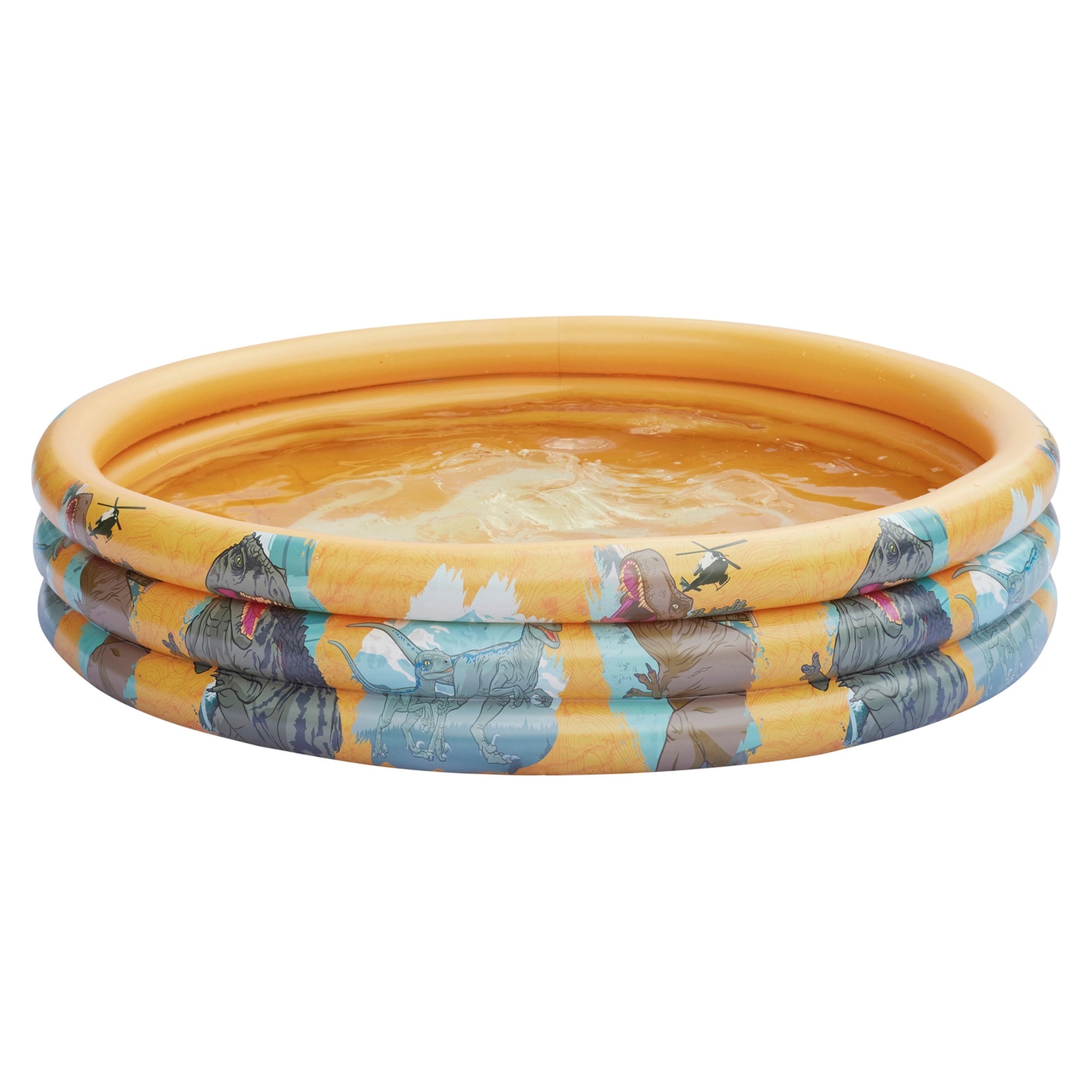 Crafted from durable PVC material, the Jurassic World Inflatable Pool features three inflatable rings that provide added stability and safety. The pool's depth of approximately 23 cm makes it ideal for young children, allowing them to splash and play without the worry of deep water. The printed pool bottom enhances the overall aesthetic, bringing the Jurassic theme to life and making every splash feel like an adventure in a prehistoric paradise.