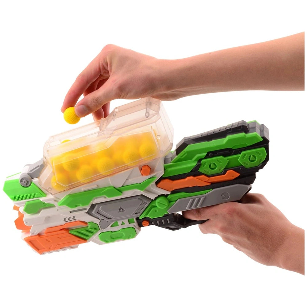Johntoy - Tack Pro Power Shot I avec 30 balles 36 cm - Équipement de jeu extérieur Découvrez le Johntoy Tack Pro Power Shot I, un équipement de jeu extérieur exaltant conçu pour rehausser l'expérience de jeu de votre enfant. Ce blaster Rival impressionnant mesure 36 cm de long et est parfait pour les enfants de 8 ans et plus. Avec son design vibrant en vert, noir et orange, accentué de blanc et de gris, le Tack Pro Power Shot I non seulement a fière allure, mais offre également une aventure pleine d'action qui tiendra les enfants en haleine pendant des heures. La caractéristique phare du Tack Pro Power Shot I est son design innovant de trémie, qui permet un chargement facile de jusqu'à 30 cartouches Rival. Cela signifie moins de temps passé à recharger et plus de temps à profiter de l'excitation du jeu. La trémie montée sur le dessus est conviviale, garantissant que même les jeunes joueurs peuvent rapidement revenir à l'action. Il suffit de charger les balles, de tirer sur la poignée de mise à feu, et vous êtes prêt à libérer une tempête de plaisir. Ce qui distingue le Tack Pro Power Shot I des autres blasters, c'est sa compatibilité avec les cartouches Rival de différentes marques. Cette polyvalence permet une intégration sans faille dans toute collection existante d'équipements de jeu extérieur, en faisant un ajout fantastique pour les familles qui aiment s'engager dans des jeux compétitifs. Que ce soit pour une bataille amicale dans le jardin ou un événement extérieur plus grand, ce blaster est conçu pour performer. La sécurité est toujours une priorité, et le Tack Pro Power Shot I est construit avec des matériaux durables capables de résister aux rigueurs du jeu extérieur. Le design garantit qu'il est léger tout en étant robuste, permettant une manipulation et une maniabilité faciles. Les parents peuvent être rassurés en sachant que leurs enfants jouent avec un produit qui respecte les normes de sécurité tout en offrant une expérience exaltante. En plus de ses caractéristiques impressionnantes, le Tack Pro Power Shot I encourage l'activité physique et l'interaction sociale entre les enfants. Participer à des jeux en extérieur favorise non seulement la forme physique, mais aussi le travail d'équipe et la pensée stratégique alors que les enfants élaborent leurs propres plans de jeu et s'affrontent. Ce blaster est plus qu'un simple jouet ; c'est un outil pour construire des amitiés et créer des souvenirs durables. Ne manquez pas l'occasion d'améliorer le temps de jeu extérieur de votre enfant avec le Johntoy Tack Pro Power Shot I. Avec son mécanisme de chargement facile, sa compatibilité avec diverses cartouches Rival et son design robuste, ce blaster est sûr de faire sensation. Équipez votre enfant pour des heures de plaisir et d'aventure—commandé le Tack Pro Power Shot I aujourd'hui et regardez son imagination s'envoler !