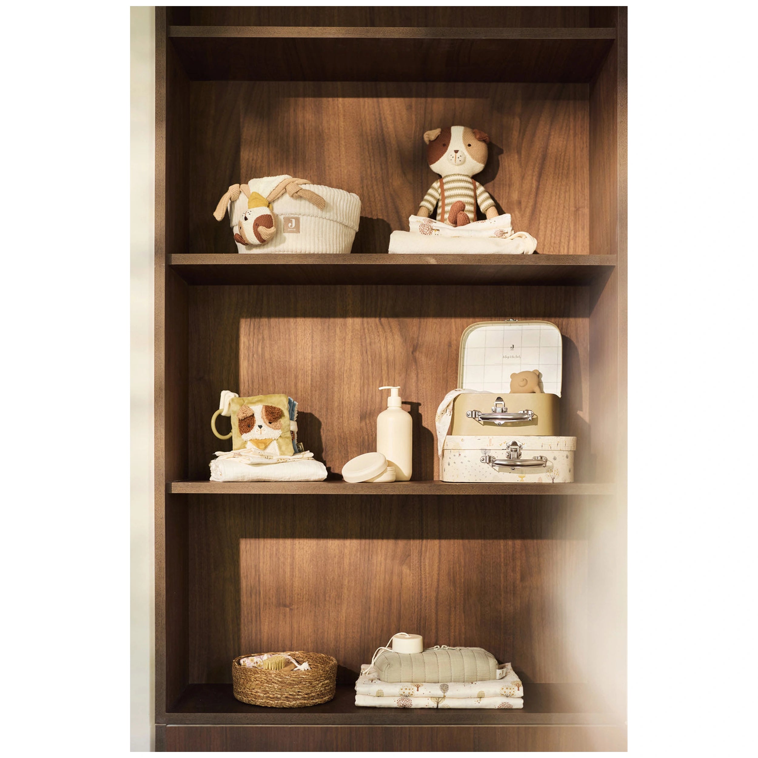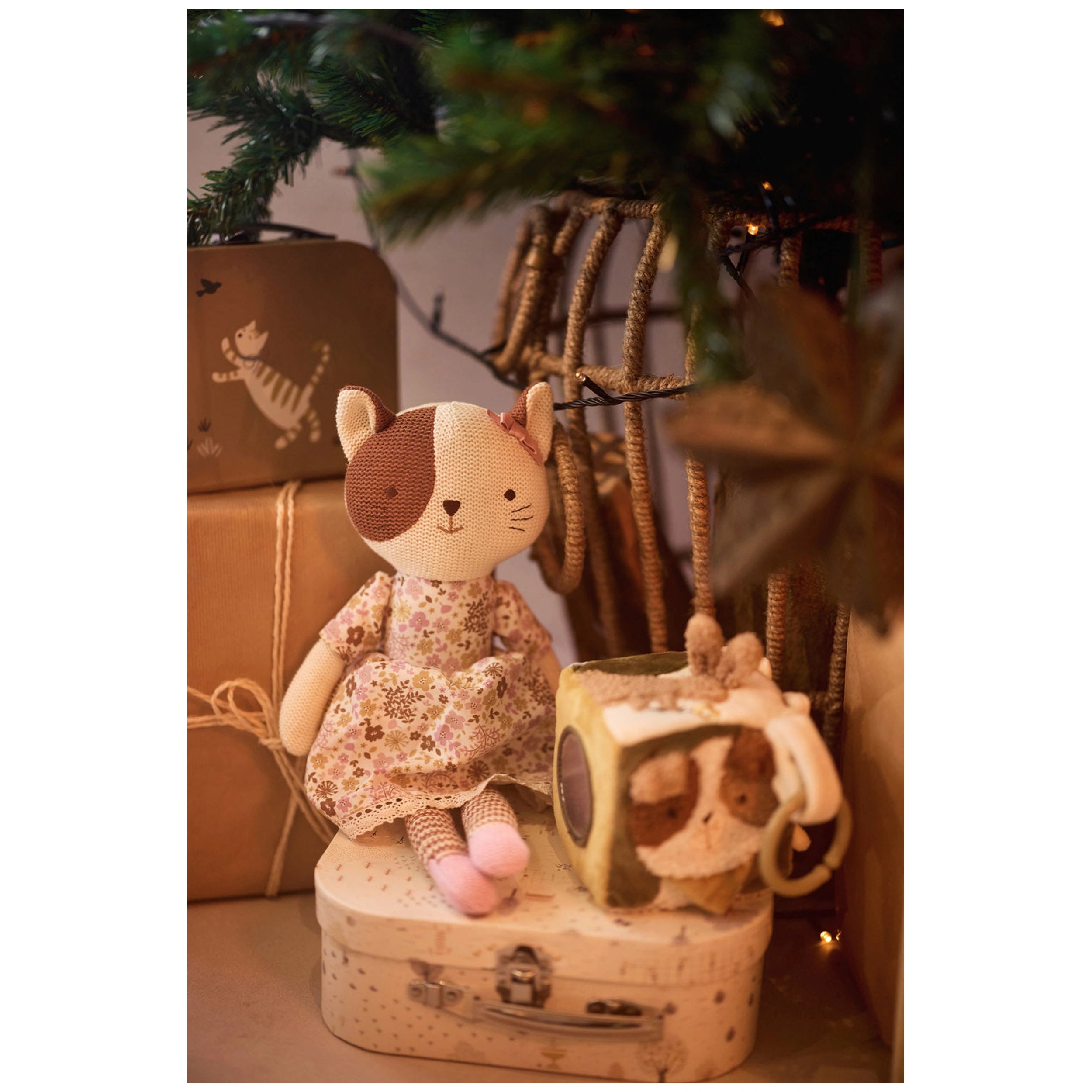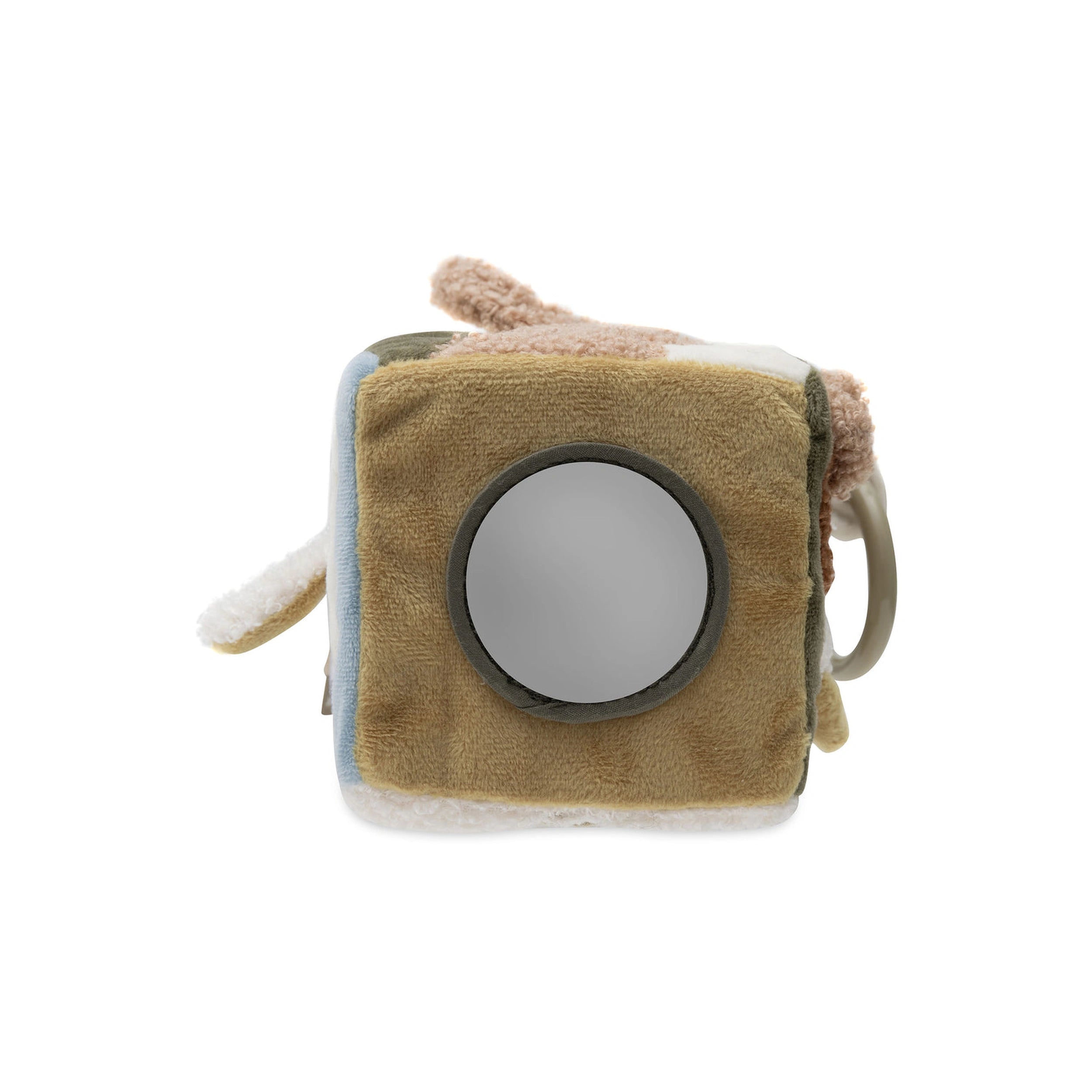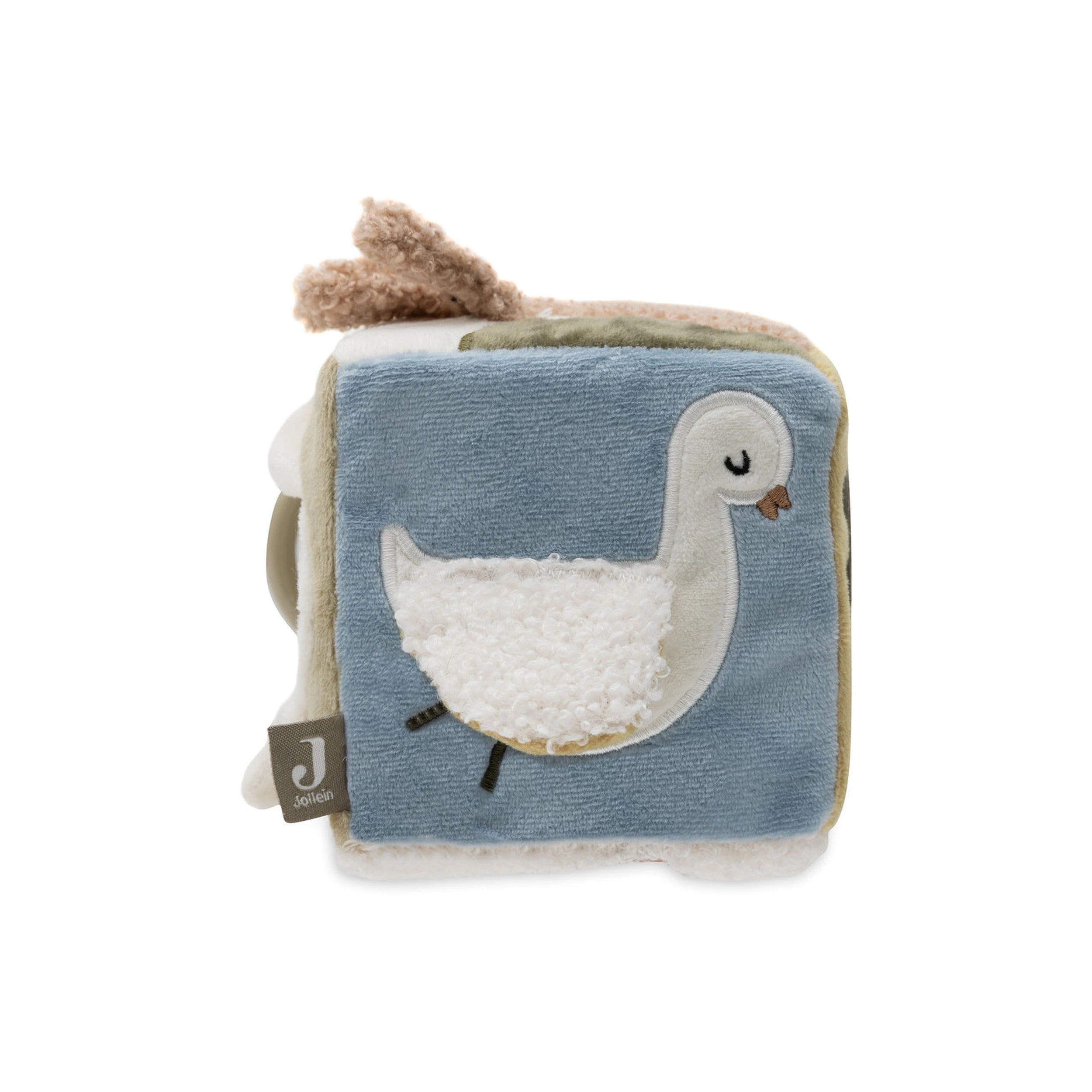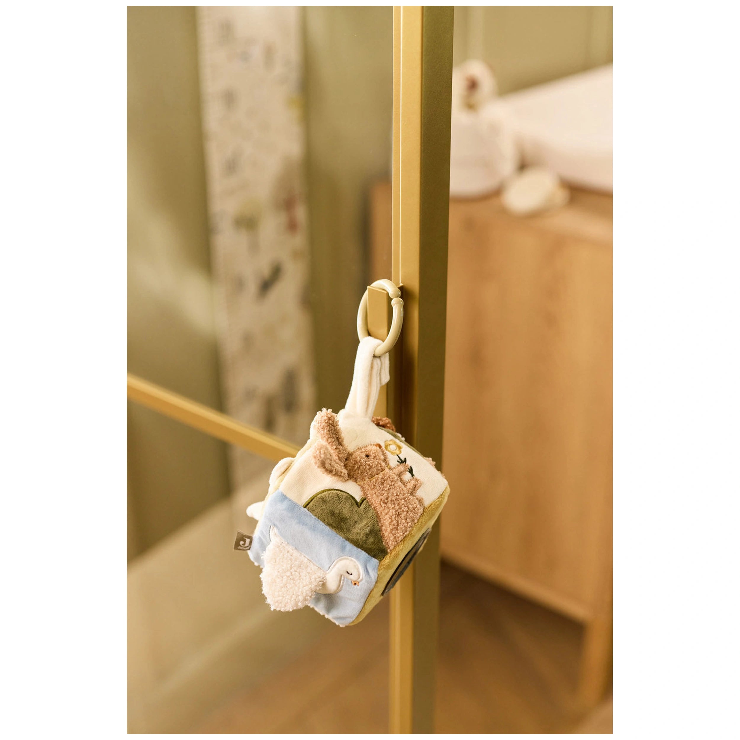 Introducing the Jollein Activity Cube from the Tiny Park collection, a delightful addition to your baby's toy collection. This enchanting soft activity cube is designed to engage your little one’s senses while promoting essential motor skills. With its charming animal characters, including a cat, dog, and owl, this toy is not only visually appealing but also serves as an interactive learning tool for infants.