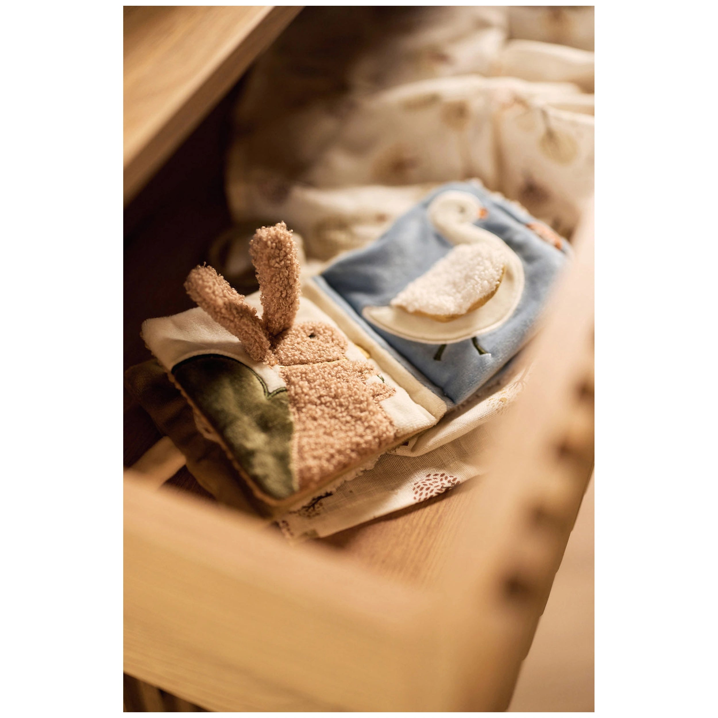 Jollein - Livre d'Activités Doux - Jouets d'Activité pour Bébé Découvrez le Livre d'Activités Doux Jollein de la collection Tiny Park, un ajout charmant au temps de jeu de votre bébé, conçu pour stimuler et engager ses sens en développement. Ce livre d'activités adorable présente une gamme de personnages animaux, y compris un lapin, un oiseau, un canard et un cygne, chacun soigneusement conçu pour capturer l'attention de votre enfant. Les couleurs vives et les textures sont non seulement visuellement attrayantes, mais encouragent également l'exploration tactile, faisant de ce jouet un essentiel pour le développement précoce. Le Livre d'Activités Doux Jollein est soigneusement conçu avec quatre pages interactives, chacune remplie de matériaux froissés qui produisent des sons agréables au toucher. Ce retour auditif est crucial pour le développement sensoriel, car il encourage les bébés à explorer et à interagir avec leur environnement. L'inclusion d'un miroir permet à votre petit de s'engager dans la découverte de soi, favorisant ses compétences cognitives tout en offrant un divertissement sans fin. En plus des personnages engageants et des textures froissées, le livre présente de charmants petits arbres qui ajoutent une couche supplémentaire d'intérêt visuel. Ces éléments ne sont pas seulement décoratifs ; ils servent à enrichir le jeu imaginatif de votre bébé, lui permettant de créer des histoires et des scénarios en interagissant avec le livre. Ce jeu imaginatif est vital pour le développement cognitif et aide à construire des compétences linguistiques alors que votre enfant commence à exprimer ses pensées et ses idées. La sécurité est une priorité absolue avec le Livre d'Activités Doux Jollein. Fabriqué à partir de matériaux de haute qualité et sûrs pour les bébés, ce livre d'activités est conçu pour résister aux rigueurs du temps de jeu tout en garantissant la sécurité de votre enfant. Le tissu doux est délicat pour les petites mains et les bouches, ce qui en fait un choix idéal pour les nourrissons et les tout-petits. Les parents peuvent être rassurés en sachant que leurs petits jouent avec un produit qui respecte des normes de sécurité strictes. Prendre soin du Livre d'Activités Doux Jollein est simple et direct. Il est recommandé de laver le livre à la main pour maintenir sa qualité et sa longévité. Évitez de repasser, de sécher en machine ou de vaporiser pour garantir que les couleurs vives et les textures restent intactes. Cet entretien facile vous permet de garder le livre d'activités frais et propre pour que votre bébé puisse en profiter encore et encore. En conclusion, le Livre d'Activités Doux Jollein - Tiny Park est plus qu'un simple jouet ; c'est un outil précieux pour le développement sensoriel, l'amélioration des compétences motrices et le jeu imaginatif. Offrez à votre bébé le cadeau de l'exploration et de la découverte avec ce livre d'activités enchanteur. Ne manquez pas l'occasion d'enrichir le temps de jeu de votre enfant : commandez dès aujourd'hui votre Livre d'Activités Doux Jollein et regardez votre petit s'émerveiller dans le monde de Tiny Park !
