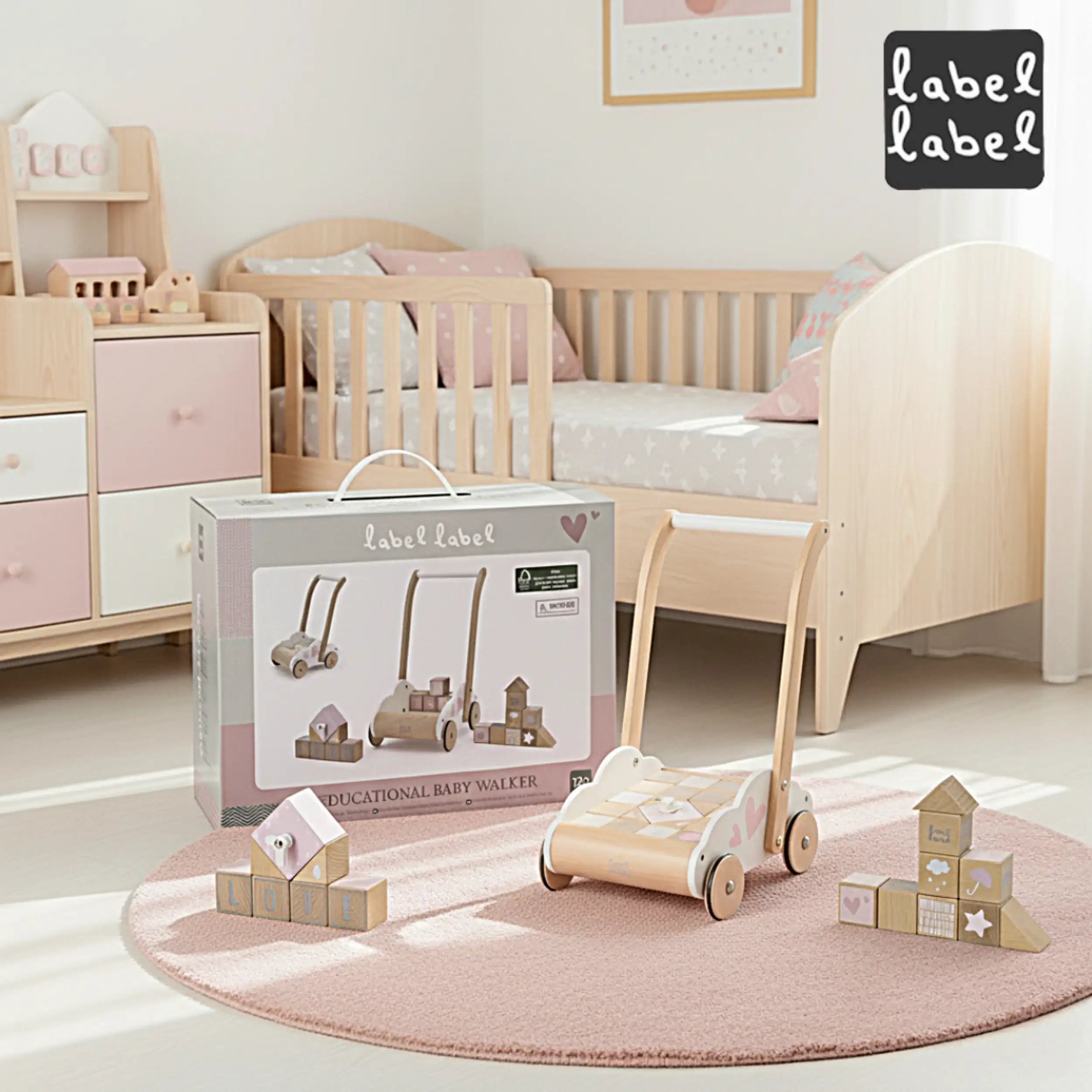 Label-Label - Trottinette Éducative pour Bébé - Jouets d'Activité pour Bébé Découvrez la Trottinette Éducative pour Bébé de Label-Label en rose, un jouet charmant et engageant conçu pour soutenir le développement précoce de votre enfant. Fabriquée en bois de hêtre certifié FSC de haute qualité, cette trottinette allie durabilité et attrait esthétique, en faisant un ajout parfait à toute salle de jeux. Les douces teintes bleues, blanches et grises, appliquées avec une peinture à base d'eau adaptée aux enfants, créent un environnement visuellement agréable qui encourage l'exploration et la créativité. La base unique en forme de nuage de la trottinette est non seulement charmante mais aussi conçue pour la stabilité. Équipée de roues en bois avec des inserts en caoutchouc, cette trottinette glisse en douceur sur diverses surfaces, permettant à votre petit de naviguer dans son environnement avec confiance. Bien que ce produit ne soit pas destiné à apprendre à marcher, il sert d'outil de motivation qui encourage le mouvement et améliore les compétences motrices, offrant une expérience sûre et soutenue pour les tout-petits. À l'intérieur du chariot à blocs, vous trouverez 20 blocs magnifiquement conçus, chacun imprimé avec des lettres, des chiffres, des symboles arithmétiques et même une horloge. Ce design réfléchi transforme le temps de jeu en une aventure éducative, permettant aux enfants de s'engager dans un jeu imaginatif tout en développant des compétences essentielles. En empilant, triant et créant, ils amélioreront naturellement leurs compétences motrices fines et leur coordination œil-main. La polyvalence des blocs va au-delà du simple jeu ; ils sont parfaits pour introduire des concepts fondamentaux tels que la numératie et la reconnaissance des lettres. Les enfants peuvent s'exercer à former leurs premiers mots et à effectuer des calculs de base, posant ainsi les bases de l'apprentissage futur. Le bloc horloge, avec ses aiguilles mobiles, rend l'apprentissage de l'heure agréable et interactif, transformant une compétence complexe en un défi amusant. Les parents apprécieront la facilité de nettoyage, car les blocs s'intègrent parfaitement dans le chariot, rendant le rangement partie intégrante de l'expérience de jeu. Cette fonctionnalité favorise non seulement l'organisation mais enseigne également aux enfants la responsabilité de manière ludique. La Trottinette Éducative pour Bébé de Label-Label est conçue pour grandir avec votre enfant, offrant d'innombrables opportunités d'apprentissage et de développement. Ne manquez pas l'occasion d'enrichir le temps de jeu de votre enfant avec la Trottinette Éducative pour Bébé de Label-Label en rose. Investissez dans un jouet qui allie plaisir et éducation, favorisant la croissance de votre enfant tout en le divertissant. Commandez maintenant et regardez votre petit se lancer dans un voyage de découverte et d'apprentissage !