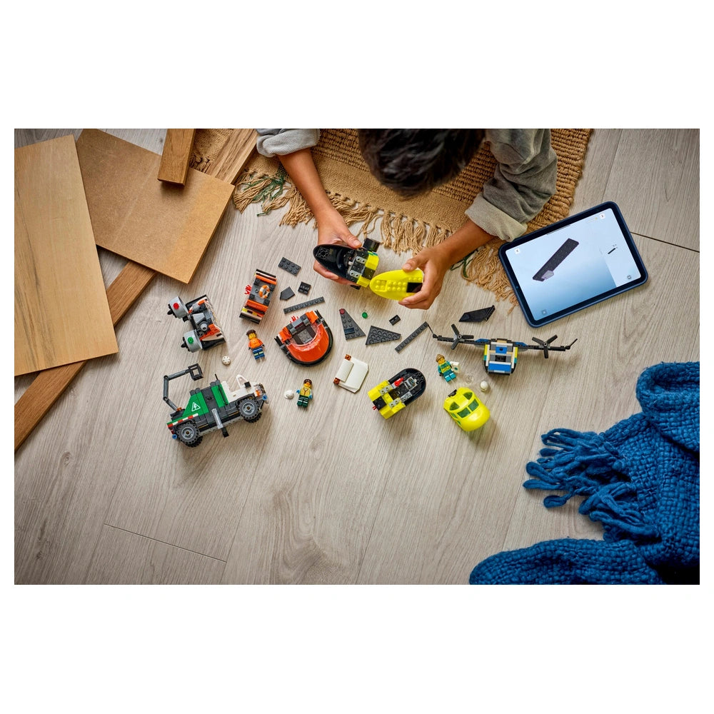 LEGO - City Avion, Camion de Service & Aéroglisseur Remix - Ensemble de Construction Découvrez le LEGO® City Avion, Camion de Service & Aéroglisseur Remix (60505), un ensemble de construction dynamique conçu pour inspirer la créativité et le jeu imaginatif chez les enfants de 7 ans et plus. Cet ensemble captivant comprend trois véhicules d'urgence emblématiques : un avion médical, un aéroglisseur de garde-côte et un camion de service équipé d'un bras élévateur. Chaque modèle est fabriqué avec des composants modulaires, permettant aux jeunes constructeurs de mélanger et d'associer les pièces pour créer des véhicules uniques adaptés à des missions de sauvetage palpitantes. La polyvalence de cet ensemble est l'une de ses caractéristiques remarquables. Avec 988 pièces, les enfants peuvent facilement démonter et remonter les véhicules, favorisant ainsi les compétences en résolution de problèmes et encourageant la pensée créative. Le design modulaire signifie que les enfants peuvent se lancer dans une variété d'aventures, qu'ils sauvent des vies dans les airs ou naviguent sur l'eau. Les figurines incluses—un médecin, un garde-côte et un secouriste en montagne—ajoutent une couche supplémentaire d'excitation, permettant aux enfants de mettre en scène leurs propres scénarios de sauvetage. En plus de l'expérience de construction physique, l'application LEGO Builder améliore le temps de jeu avec des instructions 3D interactives. Cet outil innovant permet aux enfants de zoomer, de faire pivoter les modèles et de suivre leurs progrès pendant qu'ils construisent. L'application transforme le processus de construction en une aventure numérique engageante, facilitant le suivi et l'achèvement des modèles avec confiance. Cet ensemble LEGO n'est pas qu'un simple jouet ; c'est une excellente idée de cadeau pour les anniversaires ou les occasions spéciales. Il plaît aussi bien aux garçons qu'aux filles qui aiment le jeu imaginatif et pratique. La combinaison de la construction et de la narration encourage les enfants à s'engager dans des scénarios de jeu de rôle, améliorant ainsi leurs compétences sociales et leur créativité. Lorsqu'il est associé à d'autres ensembles LEGO City, les possibilités d'aventure s'élargissent encore, offrant des heures de divertissement sans fin. Le LEGO® City Avion, Camion de Service & Aéroglisseur Remix est conçu pour être à la fois amusant et éducatif. En construisant et en jouant, les enfants développent des compétences motrices fines, une conscience spatiale et des capacités de travail en équipe. Les accessoires réalistes de l'ensemble, tels qu'une bouée de sauvetage en jouet, une clé à molette et une trousse de secours, enrichissent encore l'expérience de jeu, permettant des scénarios détaillés et imaginatifs. Ne manquez pas l'occasion d'inspirer la créativité et les compétences en résolution de problèmes de votre enfant avec le LEGO® City Avion, Camion de Service & Aéroglisseur Remix (60505). Commandez maintenant et regardez votre jeune constructeur se lancer dans des missions de sauvetage passionnantes, créant des histoires et des aventures qui dureront toute une vie !
