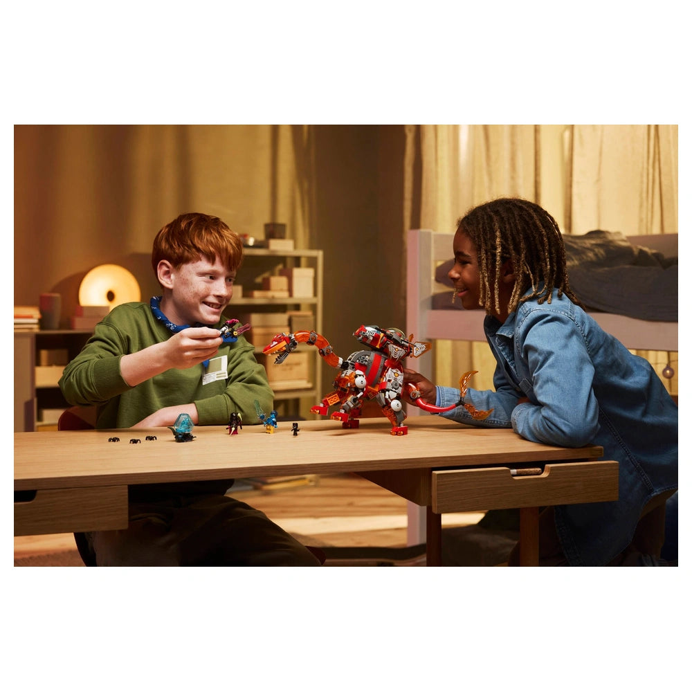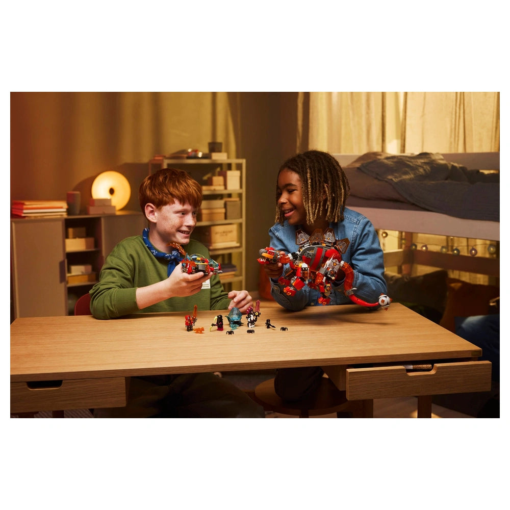 LEGO - Dreamzzz Dino Jet - Ensemble de construction Découvrez le LEGO® DREAMZzz™ Dino Jet (71514), un ensemble de construction captivant conçu pour stimuler l'imagination des garçons et des filles à partir de 9 ans. Ce kit de construction innovant offre une expérience palpitante 2-en-1, permettant aux jeunes bâtisseurs de créer soit un redoutable brontosaurus, soit un stégosaure prêt au combat, chacun étant équipé de son propre vaisseau spatial. Avec 1 007 pièces, cet ensemble promet des heures de jeu créatif et d'aventure. Le brontosaurus, une figure saisissante forgée dans la roche fondue, se dresse fièrement avec une massive queue jumelle, prêt à balayer tout sur son passage. Son vaisseau spatial détachable ajoute un élément d'exploration excitant, encourageant les enfants à s'engager dans des récits imaginatifs. D'autre part, le stégosaure armé est une bête de combat féroce, dotée d'une queue en forme de massue flamboyante et d'une construction de vaisseau spatial séparée, parfaite pour se défendre contre des ennemis imaginaires. Les deux options de dinosaures sont conçues pour captiver et inspirer, faisant de cet ensemble un incontournable pour tout jeune passionné de dinosaures. L'ensemble comprend quatre minifigurines LEGO® DREAMZzz™ : Logan, Cooper, l'Empereur des Cauchemars et Arika. Ces personnages donnent vie à l'action, encourageant les enfants à s'engager dans un jeu de rôle et à créer leurs propres récits palpitants. L'ensemble propose également des accessoires d'épée collectionnables, une faux et une lance, permettant des batailles épiques contre les trois araignées incluses et la figurine Grimspawn. De plus, l'œuf en diamant qui éclot deux jouets Trésor Créature ajoute une couche supplémentaire d'excitation et de découverte. Le LEGO® DREAMZzz™ Dino Jet n'est pas qu'un simple jouet ; c'est une expérience de construction immersive. L'ensemble est livré avec des instructions de construction guidées par l'histoire, également disponibles numériquement dans l'application LEGO Builder. Cette application permet aux enfants de zoomer, de faire pivoter et de suivre leurs progrès, améliorant leur parcours de construction et le rendant encore plus engageant. Cette fonctionnalité est particulièrement bénéfique pour les jeunes bâtisseurs, car elle les aide à développer des compétences en résolution de problèmes tout en s'amusant. Cet ensemble de construction constitue une excellente idée de cadeau pour les anniversaires ou les occasions spéciales, en particulier pour les enfants fans de dinosaures ou de l'émission de télévision LEGO® DREAMZzz™. Il encourage la créativité, la pensée critique et le jeu imaginatif, en faisant un ajout précieux à la collection de jouets de tout enfant. Les couleurs vives et les designs complexes des dinosaures et de leurs accessoires raviront à coup sûr les enfants et les parents. Ne manquez pas l'occasion d'inspirer la créativité et l'aventure dans le temps de jeu de votre enfant. Le LEGO® DREAMZzz™ Dino Jet (71514) est plus qu'un simple ensemble de construction ; c'est une porte d'entrée vers un monde d'imagination. Commandez le vôtre aujourd'hui et regardez votre enfant se lancer dans des aventures palpitantes avec ses nouveaux amis dinosaures !