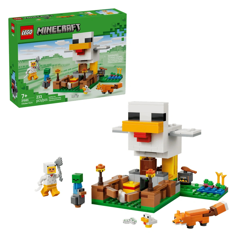LEGO - Minecraft Ferme de Poules - Ensemble de Construction Découvrez la Ferme de Poules LEGO® Minecraft® (21585), un ensemble de construction charmant conçu pour les jeunes joueurs et les passionnés de LEGO âgés de 7 ans et plus. Ce jouet de construction engageant invite les enfants à plonger dans le monde vibrant de Minecraft, où ils peuvent s'occuper des poules, cultiver des récoltes et relever des défis passionnants. Avec 233 pièces, cet ensemble favorise non seulement la créativité, mais améliore également les compétences en résolution de problèmes alors que les joueurs interagissent avec divers personnages et éléments du jeu bien-aimé. Le point central de cet ensemble est le charmant poulailler en forme de poule, qui dispose d'ailes mobiles et d'un enclos avec une porte d'entrée. Ce design imaginatif permet aux enfants de s'engager dans un jeu de rôle, s'occupant d'une poule froide et d'un poussin tout en gardant un œil sur un renard espiègle et un bébé zombie. La fonctionnalité du poulailler est encore améliorée par sa capacité à pondre des œufs et à distribuer des graines, offrant une expérience interactive qui reflète le gameplay de Minecraft. L'ensemble comprend une variété d'accessoires qui enrichissent l'expérience de jeu. Les enfants trouveront des torches, du foin, un four à fumer, deux œufs, deux lots de graines, une cuisse de poulet, une plume et une hache. Ces éléments ajoutent non seulement de la profondeur au gameplay, mais encouragent également la narration et les scénarios imaginatifs. La figurine Chicken Fan, accompagnée du bébé zombie et du renard, donne vie à l'univers de Minecraft, permettant aux enfants de recréer leurs moments préférés ou d'inventer de nouvelles aventures. L'application LEGO Builder complète cet ensemble en offrant des instructions numériques faciles à suivre qui permettent aux enfants de zoomer, de faire pivoter en 3D et de suivre leur progression de construction. Cette fonctionnalité innovante rend le processus de construction plus engageant et accessible, garantissant que les jeunes bâtisseurs peuvent assembler leur ferme de poules en toute confiance. La combinaison de jeux physiques et numériques améliore l'expérience globale, en faisant un cadeau parfait pour tout jeune fan de Minecraft. En tant que jouet polyvalent, la Ferme de Poules LEGO® Minecraft® sert non seulement de jeu amusant, mais également de pièce décorative attrayante pour la chambre. Ses dimensions—plus de 11,5 cm de haut, 14 cm de large et 11,5 cm de profondeur—en font un ajout idéal à la collection de tout enfant. Qu'il soit exposé sur une étagère ou utilisé pour des jeux imaginatifs, cet ensemble est sûr d'inspirer la créativité et de fournir des heures de divertissement. En conclusion, la Ferme de Poules LEGO® Minecraft® (21585) est une idée de cadeau exceptionnelle pour les anniversaires, les fêtes ou toute occasion spéciale. Elle encourage les enfants à explorer leur créativité tout en s'engageant avec des personnages et des scénarios familiers de l'univers Minecraft. Ne manquez pas l'occasion d'apporter cet ensemble de construction passionnant dans la vie de votre enfant—commandé maintenant et regardez leur imagination s'envoler !