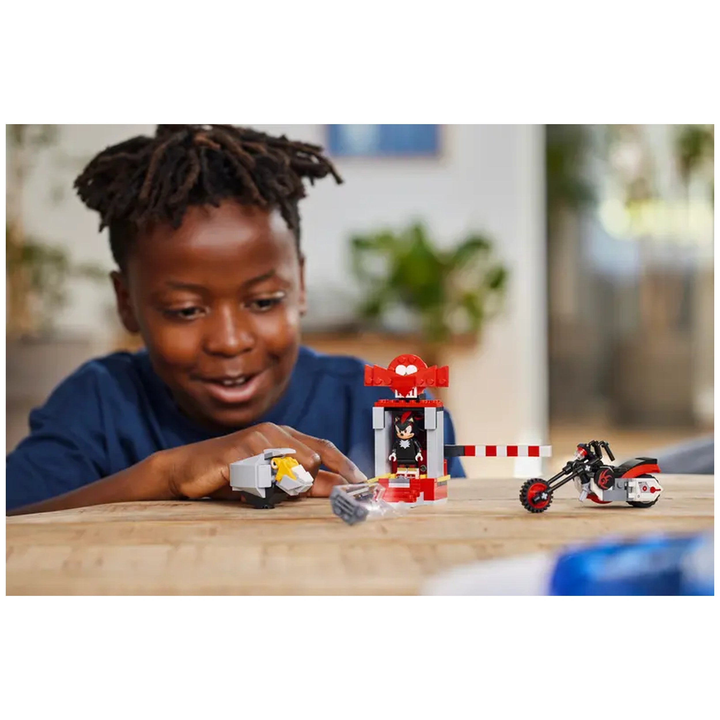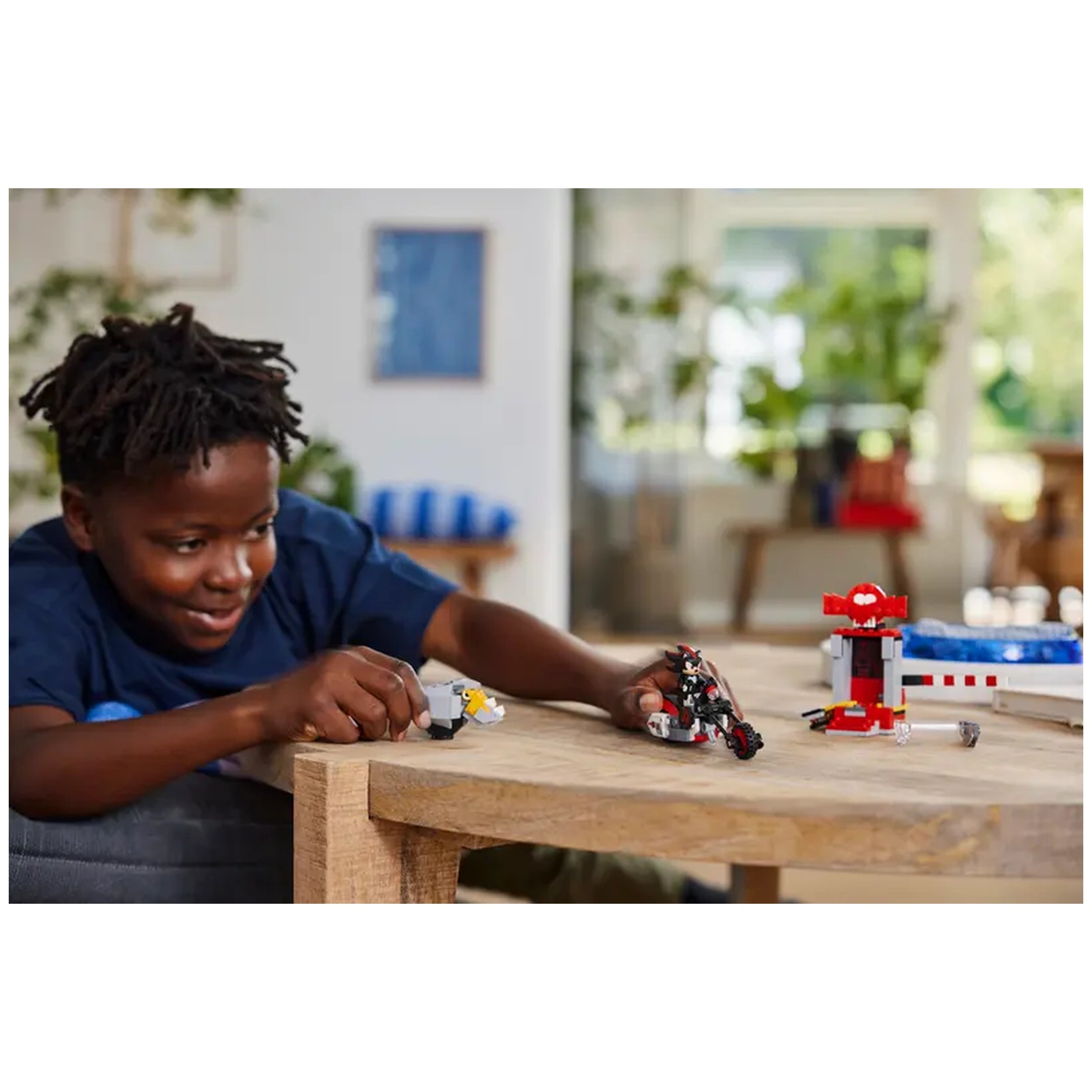 The Shadow's Escape set features a meticulously designed lab section, complete with a stasis chamber where Shadow is held captive. Kids can engage in the excitement of breaking Shadow free, racing his motorcycle past the falling barricade, and confronting the formidable Badnik, RhinoBot. This dynamic playset not only offers a variety of action-packed scenarios but also encourages children to devise their own narratives, making each play session unique and entertaining.