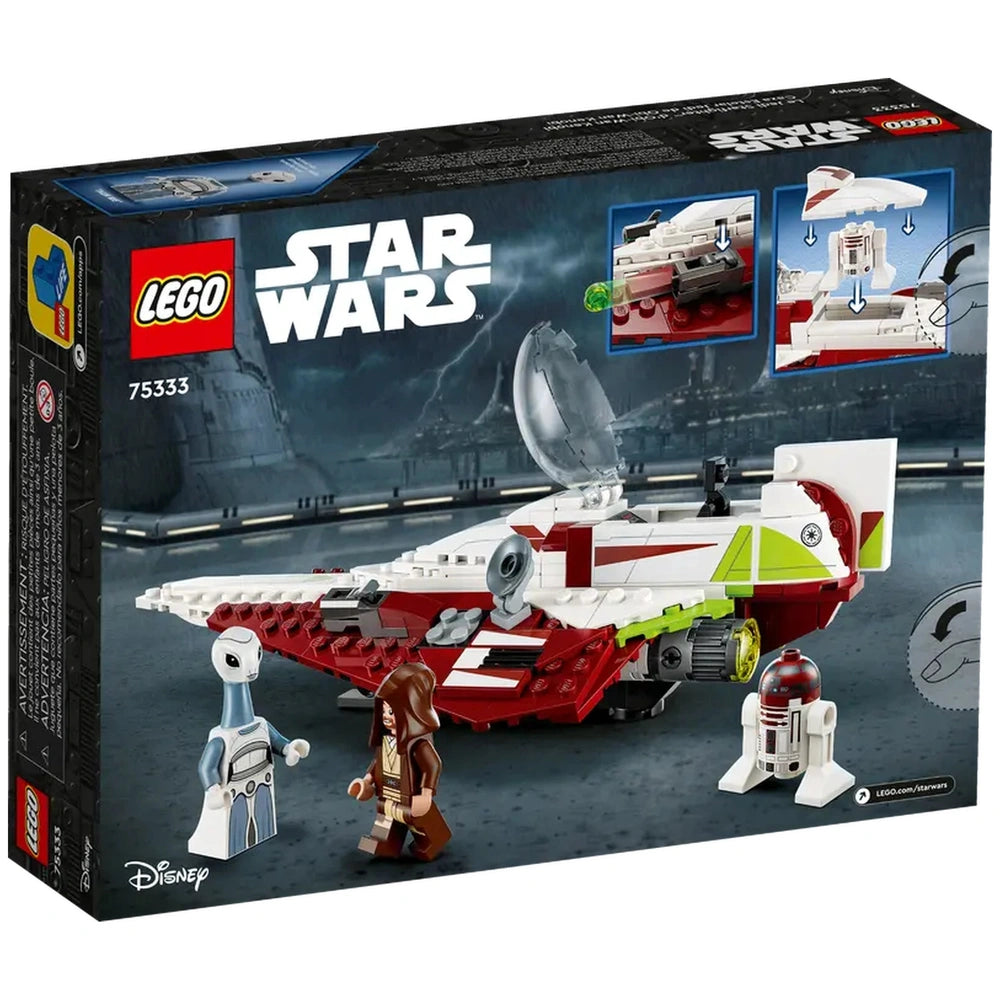 The set features an array of exciting components that enhance the play experience. The starfighter includes an opening cockpit designed to accommodate the Obi-Wan minifigure, allowing for realistic role-playing scenarios. Equipped with two stud shooters, retractable landing gear, and dedicated storage clips for Obi-Wan's lightsaber, this model is built for action. Additionally, the starfighter boasts an attachment point on the wing for the R4-P17 droid's head, further enriching the storytelling possibilities for young Jedi enthusiasts.