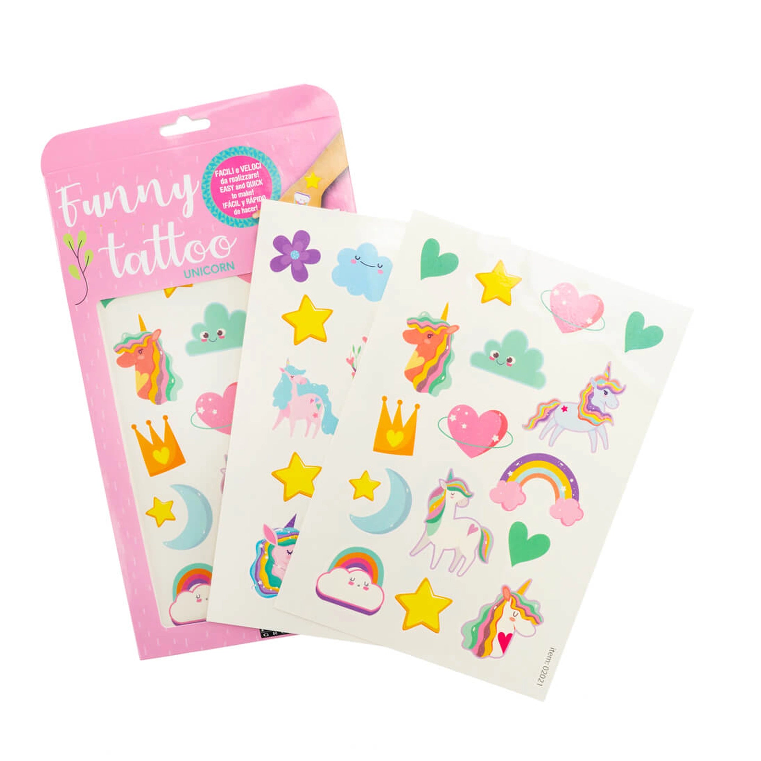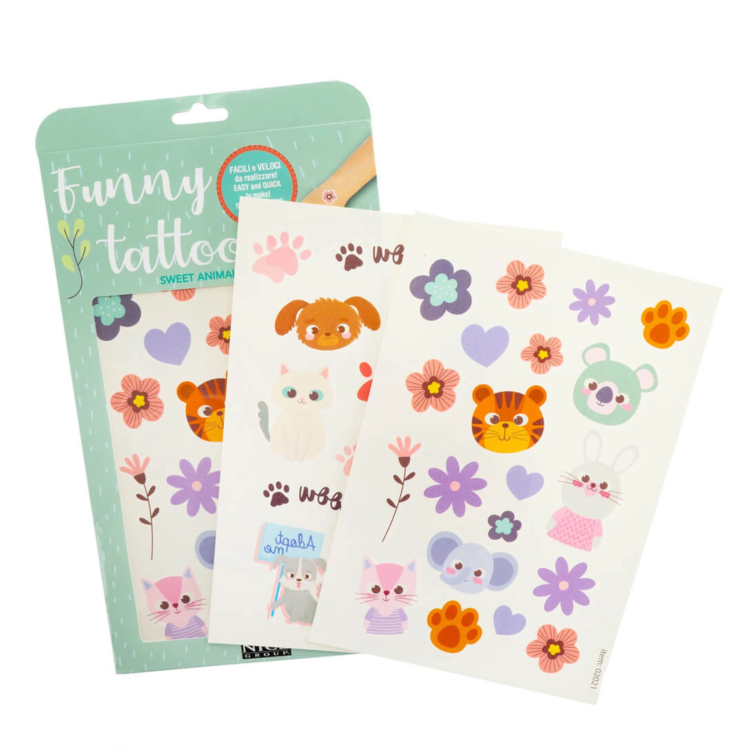 Introducing the Nice - Funny Tattoo Pack, a delightful collection of colorful temporary tattoos designed to spark joy and creativity in children and adults alike. This charming set is available in four whimsical themes: unicorns, wild animals, adorable puppies, and outer space. Each theme offers a unique opportunity for self-expression, making these tattoos perfect for parties, playdates, or simply adding a touch of fun to everyday life.