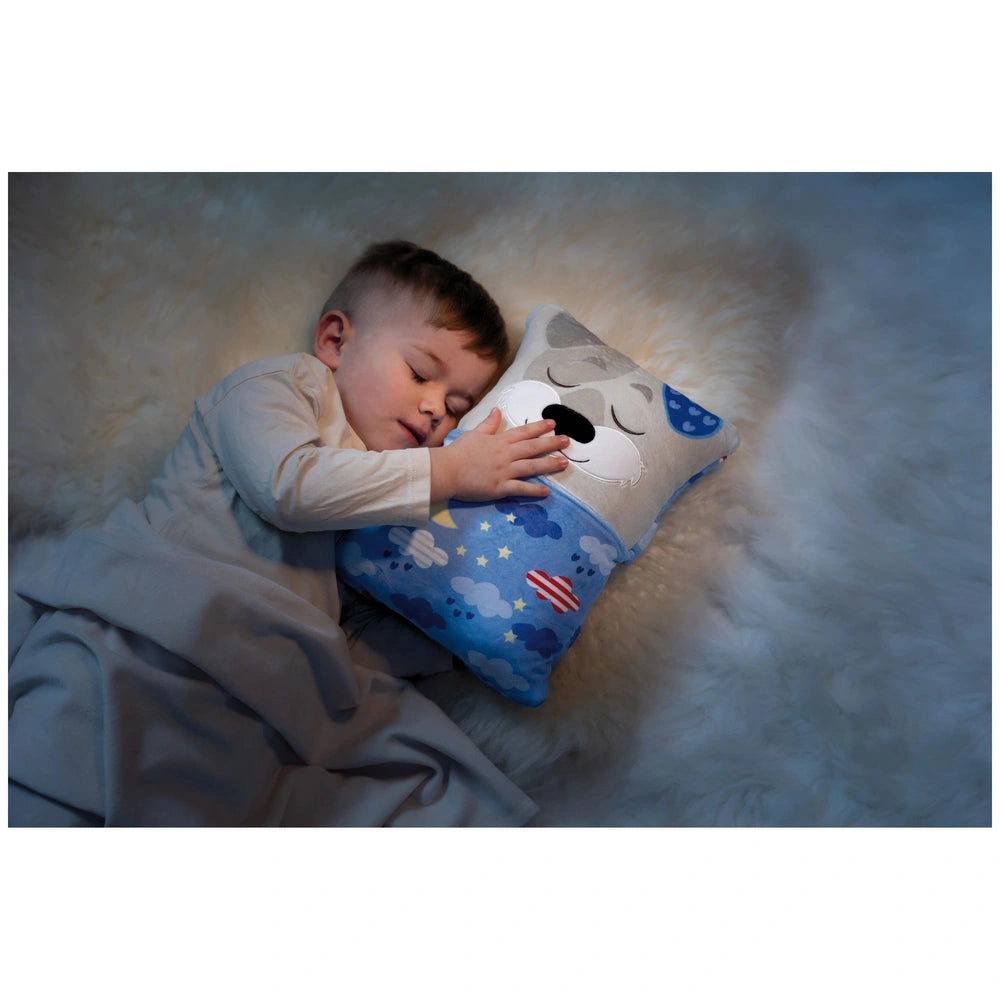 The Cosidoos dog is a charming gray plush with a playful blue ear, embodying the essence of fun and coziness. During the day, it serves as an engaging playmate, encouraging imaginative adventures and creative storytelling. Children can easily flip the dog over with a simple flick of the wrist, revealing a different color and design that signifies the transition from day to night. This unique feature not only enhances playtime but also helps children understand the concept of time, making bedtime a more enjoyable experience.