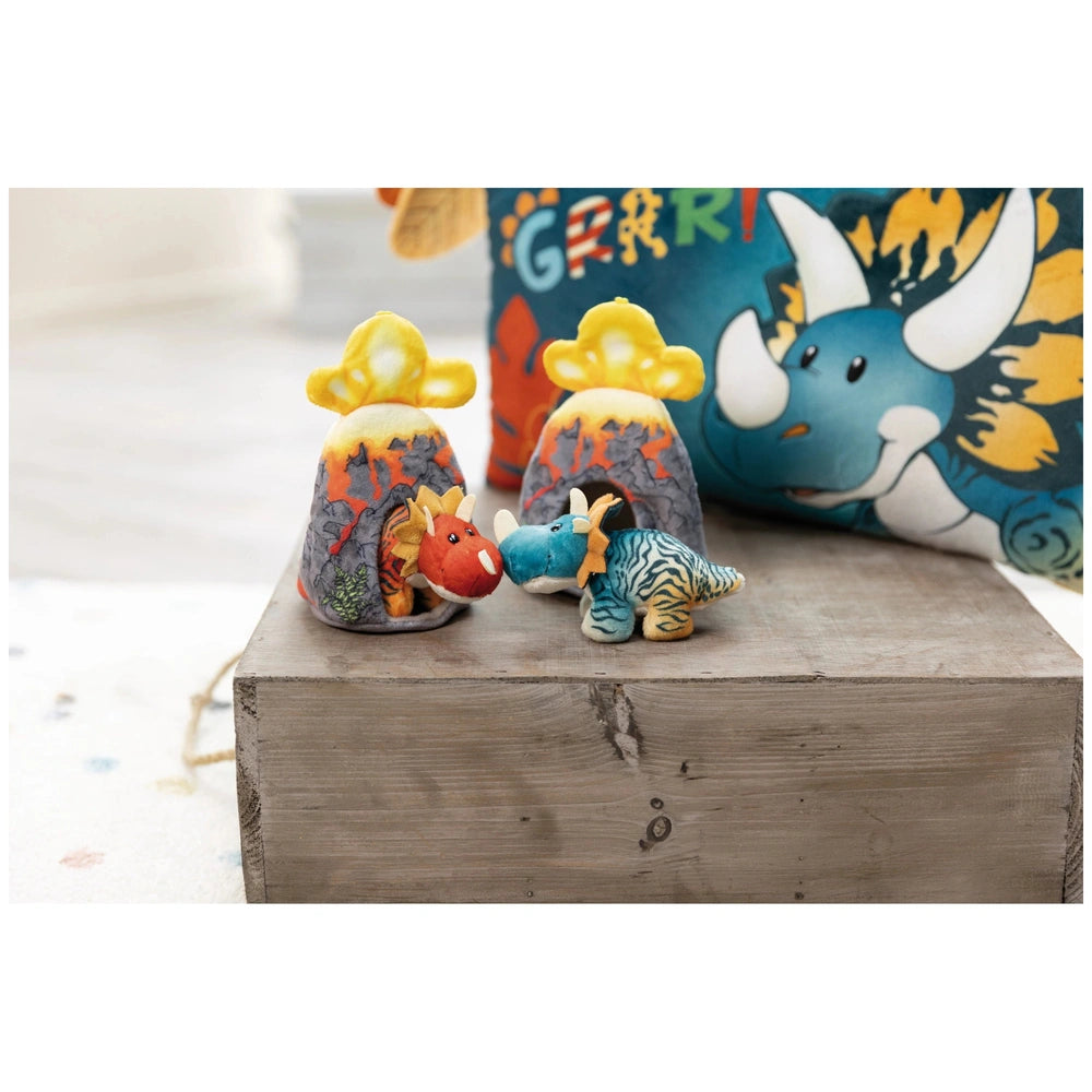 Introducing the NICI - Dinos - Soft Toy Dino Cerastupsy With Loop, a delightful addition to any dinosaur enthusiast's collection. This charming 14.5 cm plush toy is designed to capture the hearts of children and adults alike, showcasing a vibrant red Triceratops emerging from a whimsically illustrated volcano. With its friendly expression and soft texture, Cerastupsy is not just a toy; it’s a companion that sparks imagination and joy.