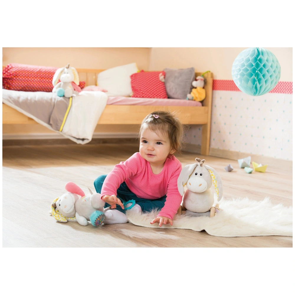 The Muli donkey is equipped with a variety of sensory elements that are sure to captivate your baby's attention. The left ear features crackling paper that produces intriguing sounds, encouraging auditory exploration. This sensory experience is essential for developing your baby's hearing skills and curiosity about the world around them. The right ear includes a removable teething ring, providing relief for sore gums while also promoting fine motor skills as your baby learns to grasp and manipulate objects.