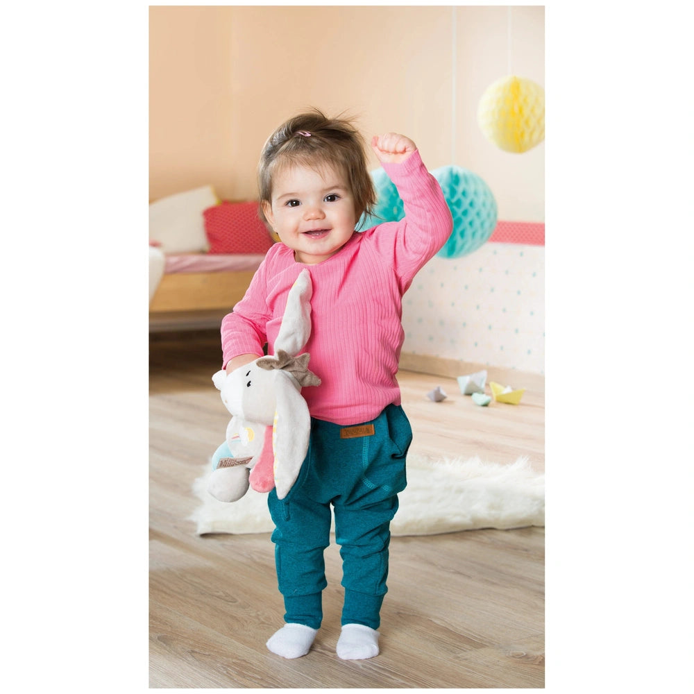 In addition to its auditory features, the Muli donkey has a squeaker hidden in its belly. When pressed, it emits funny noises that are sure to elicit giggles and smiles from your little one. This interactive element encourages your baby to engage in cause-and-effect play, an important aspect of early childhood development. The combination of textures, sounds, and colors makes this cuddly toy a multi-sensory experience that supports your baby's growth.