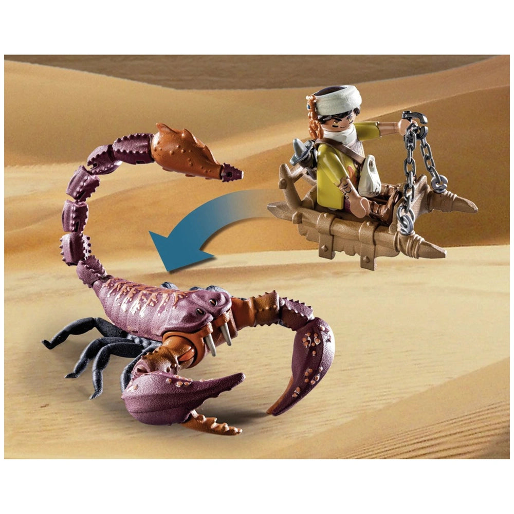 The workshop is brimming with intricate details and accessories that enhance the play experience. Children will find a pinwheel, lookout point, and a workbench equipped with various tools, all designed to spark their creativity. The attention to detail in the workshop encourages imaginative play, allowing young adventurers to envision themselves as part of Dario and the scorpion hunter's quest. The set also features a giant scorpion, a tamed beast that will chase away any attackers, adding an element of excitement and danger to the narrative.