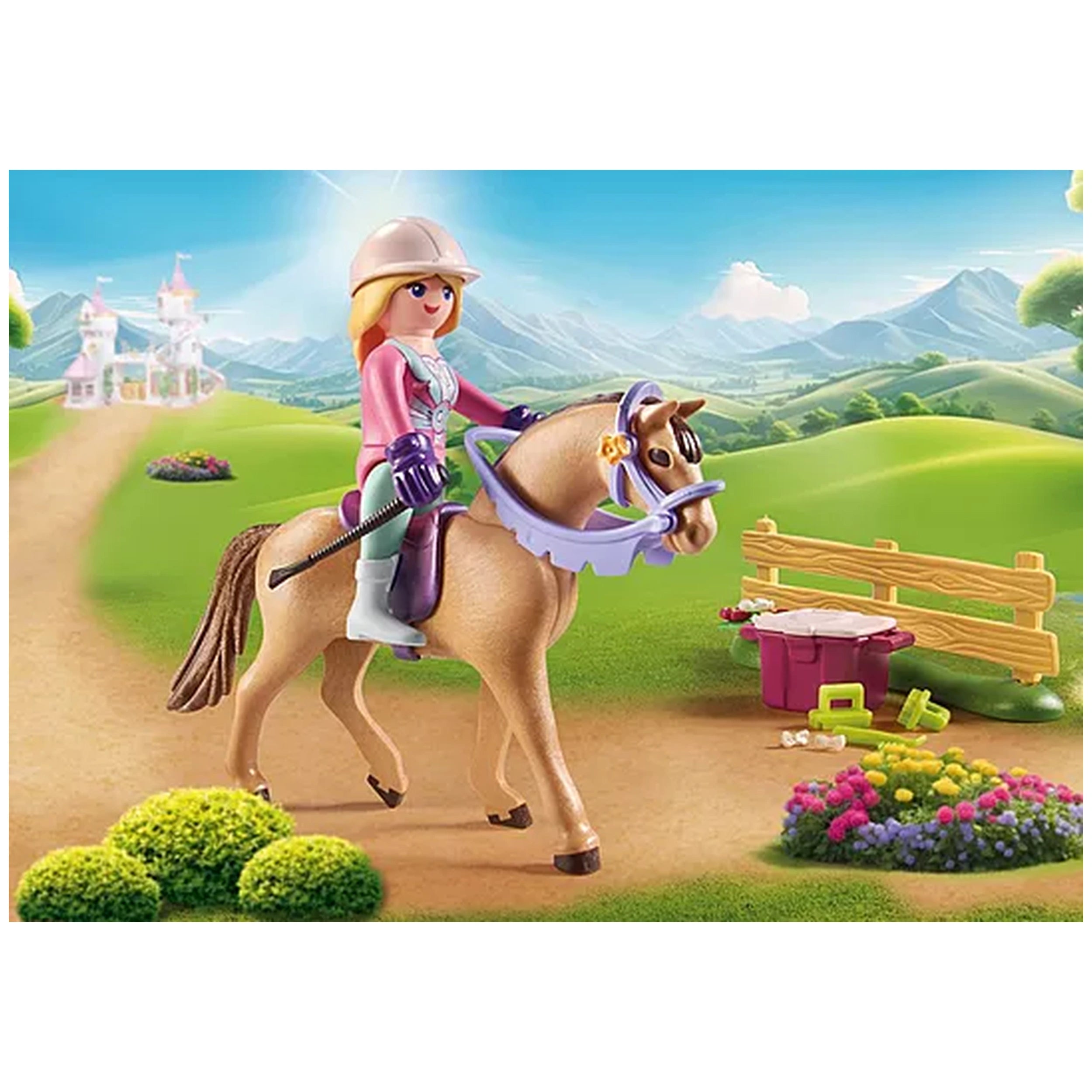 Playmobil - Pack de démarrage Princesse Magique avec Cheval (71801) présente un ensemble de jeu enchanteur qui invite les enfants dans un monde de magie et de narration imaginative. Ce set magnifiquement conçu met en scène une charmante princesse dévouée à prendre soin de son magnifique cheval. Avec ses détails raffinés et ses accessoires engageants, cet ensemble est conçu pour inspirer la créativité et favoriser l'amour de l'aventure chez les jeunes esprits. La princesse de cet ensemble n'est pas qu'une simple figurine ; elle incarne l'esprit d'aventure et de camaraderie. Vêtue d'une jupe amovible, elle est prête à chevaucher son fidèle destrier confortablement. Le design réfléchi permet des transitions fluides entre les scénarios de jeu, qu'elle galope à travers la prairie ou qu'elle s'occupe de son cheval après une longue balade. Cette polyvalence enrichit l'expérience de jeu, la rendant plus engageante et agréable pour les enfants. Après une journée d'exploration passionnante, la princesse récompense son cheval avec une carotte juteuse et une couverture douillette, soulignant l'importance des soins et de la gentillesse dans les relations. Cet aspect nourrissant de l'ensemble encourage les enfants à développer de l'empathie et un sens des responsabilités en s'engageant dans des scénarios de jeu de rôle. L'ajout d'une selle et d'outils de toilettage enrichit encore l'expérience, permettant aux enfants de s'immerger dans le rôle de soigneur. L'ensemble comprend également des nœuds décoratifs et des étoiles qui peuvent être utilisés pour orner le harnais du cheval, ajoutant une touche de magie aux occasions spéciales. Les enfants peuvent laisser libre cours à leur imagination en créant des scènes festives, transformant des moments ordinaires en aventures extraordinaires. La possibilité d'échanger la couronne de la princesse contre un casque de chevalier ajoute une autre couche de réalisme, la rendant prête pour des explorations passionnantes en plein air. Avec d'innombrables opportunités d'aventures magiques, le set PLAYMOBIL Princesse avec Cheval est parfait pour les enfants qui aiment plonger dans un monde de merveilles. Qu'ils nourrissent, toilettent ou explorent les prairies luxuriantes, cet ensemble offre d'innombrables possibilités de jeu créatif. La combinaison de détails enchanteurs et de caractéristiques interactives garantit que les enfants seront captivés pendant des heures, créant leurs propres histoires et expériences uniques. En conclusion, le Pack de démarrage Princesse Magique avec Cheval de PLAYMOBIL est plus qu'un simple jouet ; c'est une porte d'entrée vers un royaume d'imagination et de créativité. Avec sa riche gamme d'accessoires et de personnages engageants, cet ensemble est idéal pour favoriser les compétences de narration et de jeu de rôle chez les jeunes enfants. Ne manquez pas l'occasion d'apporter chez vous cet ensemble enchanteur—commandé le vôtre aujourd'hui et laissez les aventures commencer !
