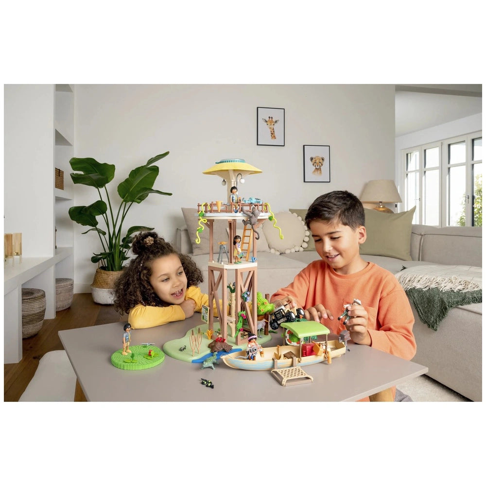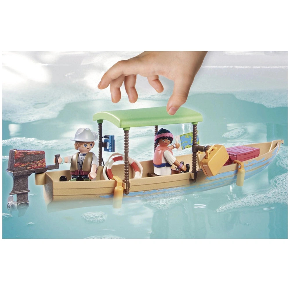The Playmobil Wiltopia Boat Trip set features a beautifully crafted boat equipped with an outboard motor and a pavilion roof, ensuring that the Palmer family can navigate the Amazon in comfort. Children will delight in the realistic details, including the floating manatee figures with movable tails, which add an extra layer of excitement to their imaginative play. The set also includes essential veterinary accessories, allowing kids to engage in role-playing scenarios where they can care for the injured manatee and her rare twin calves, fostering empathy and responsibility.