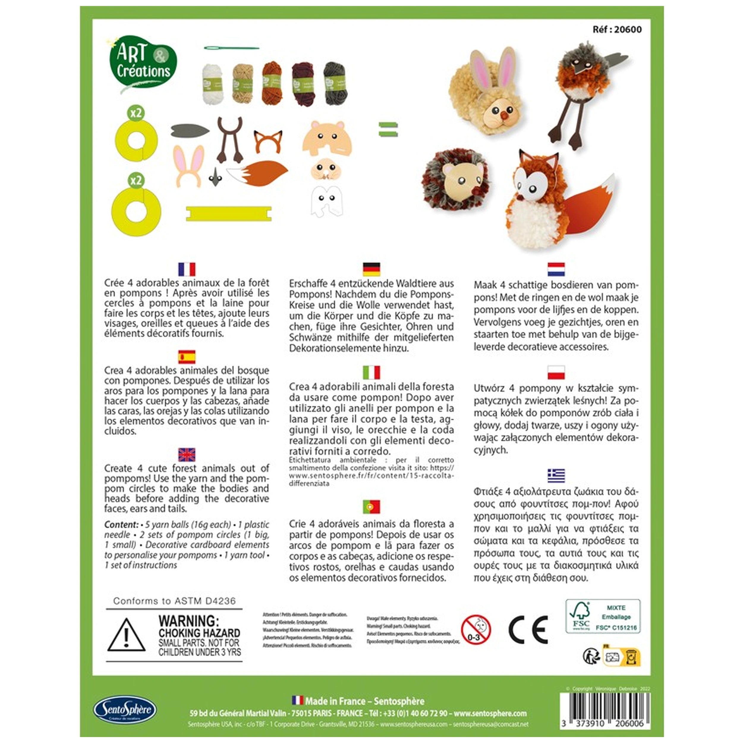 Introducing the Sentosphere Arts & Creations Animaux en Pompons, a delightful arts and crafts kit designed to inspire creativity in children and adults alike. This engaging set allows you to make charming pompoms and transform them into four adorable forest animals: a fox, a rabbit, a hedgehog, and a robin. Perfect for budding crafters, this kit combines fun and learning, making it an ideal choice for family activities or creative playdates.