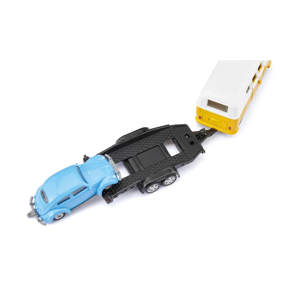 Introducing the Siku - Volkswagen T1 with trailer and Volkswagen Beetle play vehicles, a delightful set designed for young adventurers and car enthusiasts alike. This playset features two of the most beloved vehicles in automotive history, the iconic VW T1 "Bulli" and the ever-popular VW Beetle. Crafted with attention to detail, this set not only serves as a toy but also as a gateway to imaginative play, allowing children to explore their creativity while engaging with these classic cars.