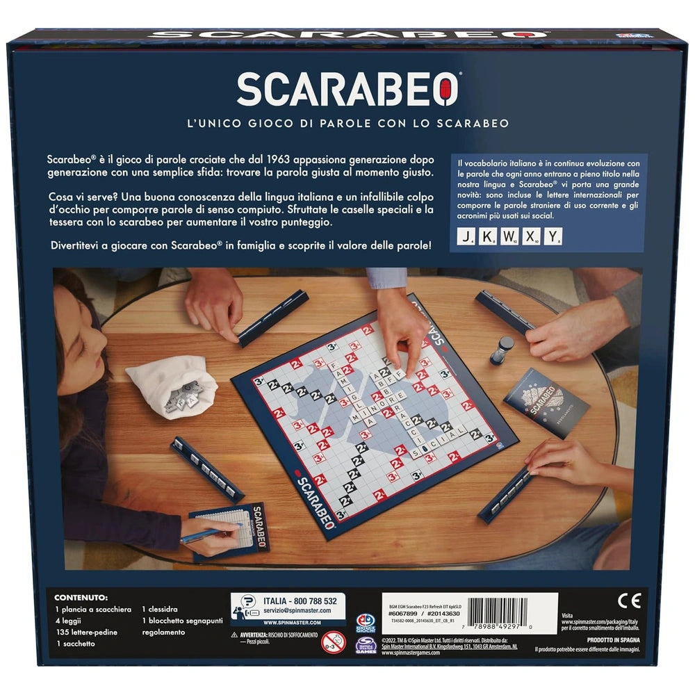 Introducing the Spin Master - Scarabeo New Edition Board Game Set - Italian Edition, a revitalized classic that brings the excitement of wordplay to your game nights. This engaging board game, originally crafted by Editrice Giochi, is designed for 2 to 4 players, making it the perfect choice for family gatherings or friendly competitions. Whether you are a seasoned wordsmith or a casual player, Scarabeo offers a delightful challenge that will keep everyone entertained.