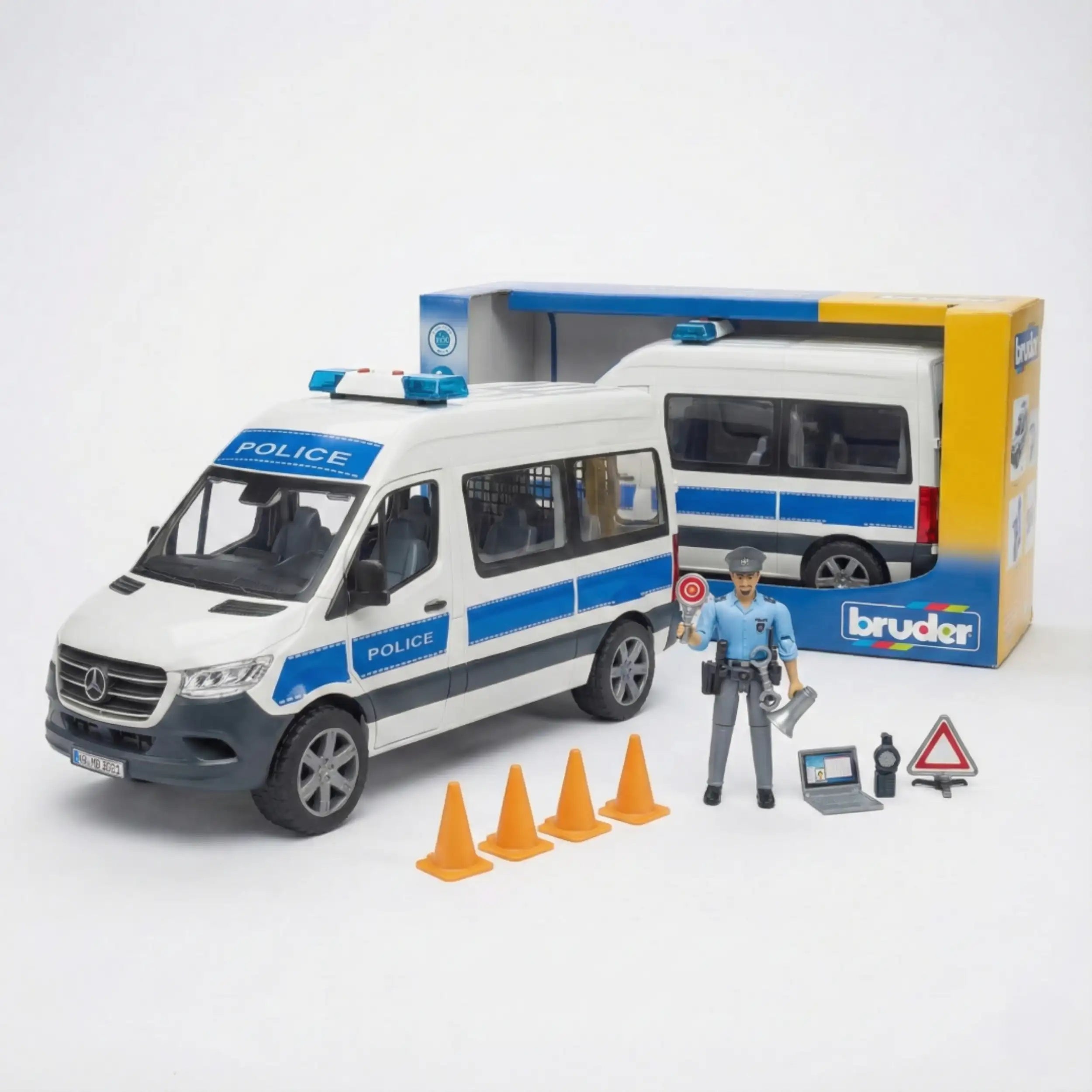 Included with the vehicle is a bworld police officer, fully equipped for various police operations. This addition allows children to engage in a wide range of scenarios, from conducting traffic stops to executing search and rescue missions. The versatility of the MB Sprinter makes it a perfect companion for the bworld police station (item no. 62732), which can further expand the imaginative play experience. The ability to take suspects into custody in a separate cell adds an extra layer of excitement and realism to the playtime adventures.