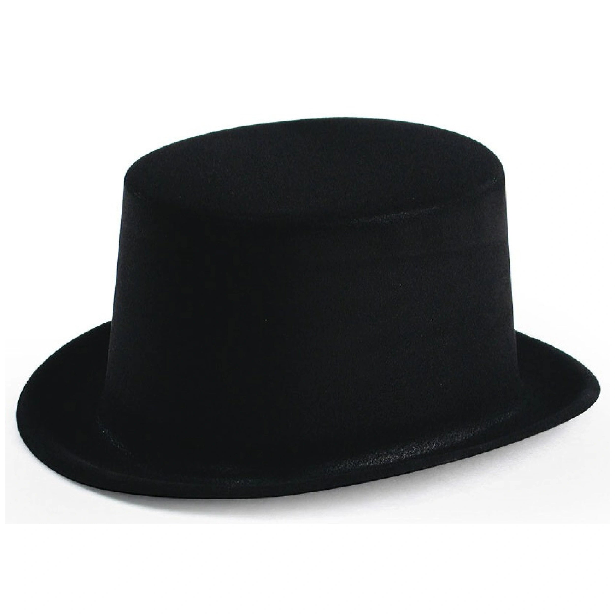 The Flocked Top Hat features a sleek black design made from high-quality monofloccato plastic, ensuring durability while maintaining a lightweight feel. Standing at approximately 11 cm in height, this classic cylindrical hat boasts a circumference of around 59 cm, making it a comfortable fit for most adults. Its timeless design is complemented by a soft flocked texture that adds a touch of luxury, making it an ideal choice for those who appreciate finer details in their attire.