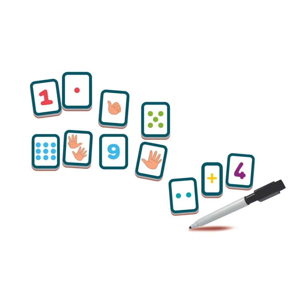 The book features a variety of magnetic number tiles and quantity pieces that allow children to physically interact with the concepts they are learning. This hands-on approach not only enhances understanding but also makes the learning process more dynamic. The progressive educational path included in the book ensures that children can build their skills step by step, making it suitable for various learning stages. The included erasable marker and two writing areas provide additional opportunities for practice, allowing children to write and erase as they master each concept.