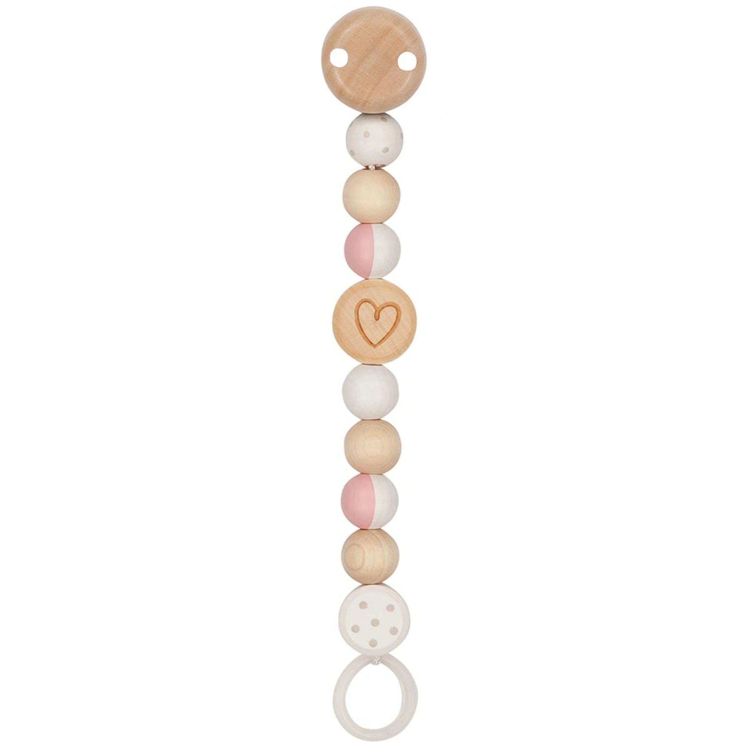 Introducing the Gollness Pacifier Chain Heart – a delightful accessory designed to keep your baby's pacifier secure while adding a touch of charm to their outfit. Crafted from high-quality maple wood and available in soft pastel colors, this pacifier chain is not only functional but also aesthetically pleasing. With a length of approximately 21 cm, it easily clips onto your baby's clothing, ensuring that the pacifier stays within reach and is less likely to get lost during playtime or outings.