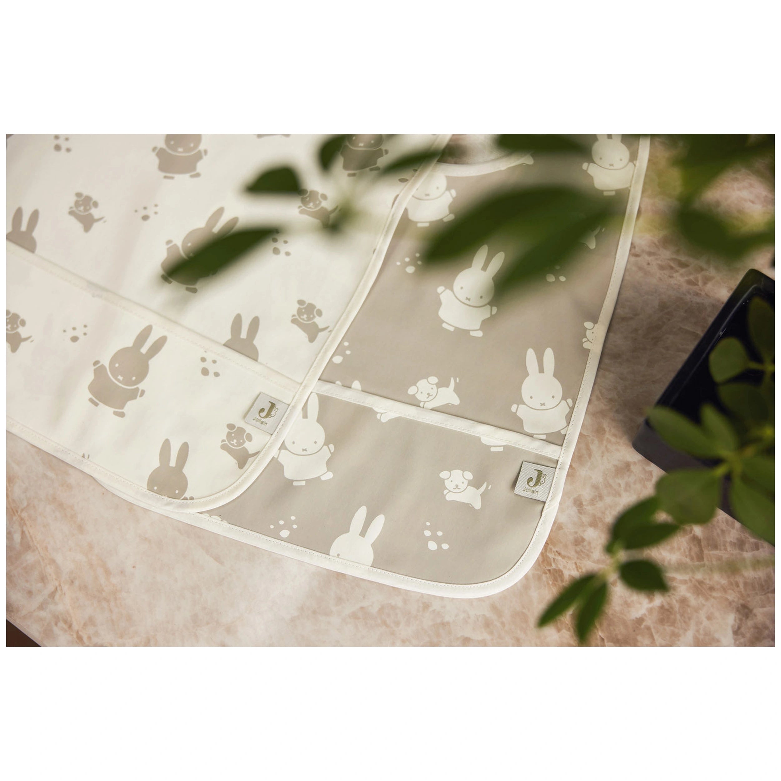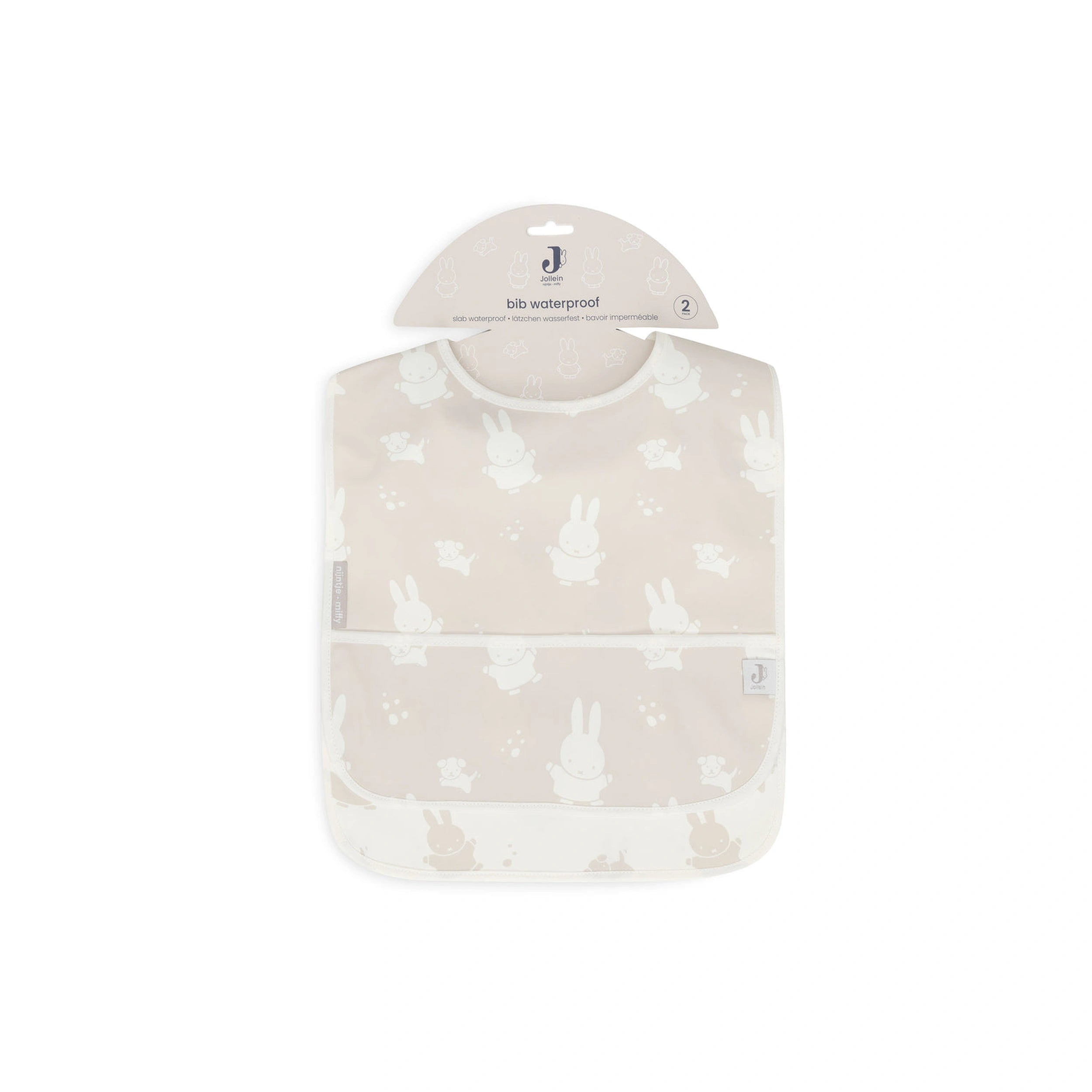 Introducing the Jollein Waterproof Bib featuring the charming Miffy & Snuffy design, available in a convenient 2-pack in the delightful Nougat color. This essential baby accessory is designed to make mealtime a joyful experience for both parents and little ones. From the very first taste of solid food to the adventurous eating habits of toddlers, a reliable bib is a must-have for any parent. The Jollein bib not only protects your child's clothing but also adds a touch of fun with its playful prints.