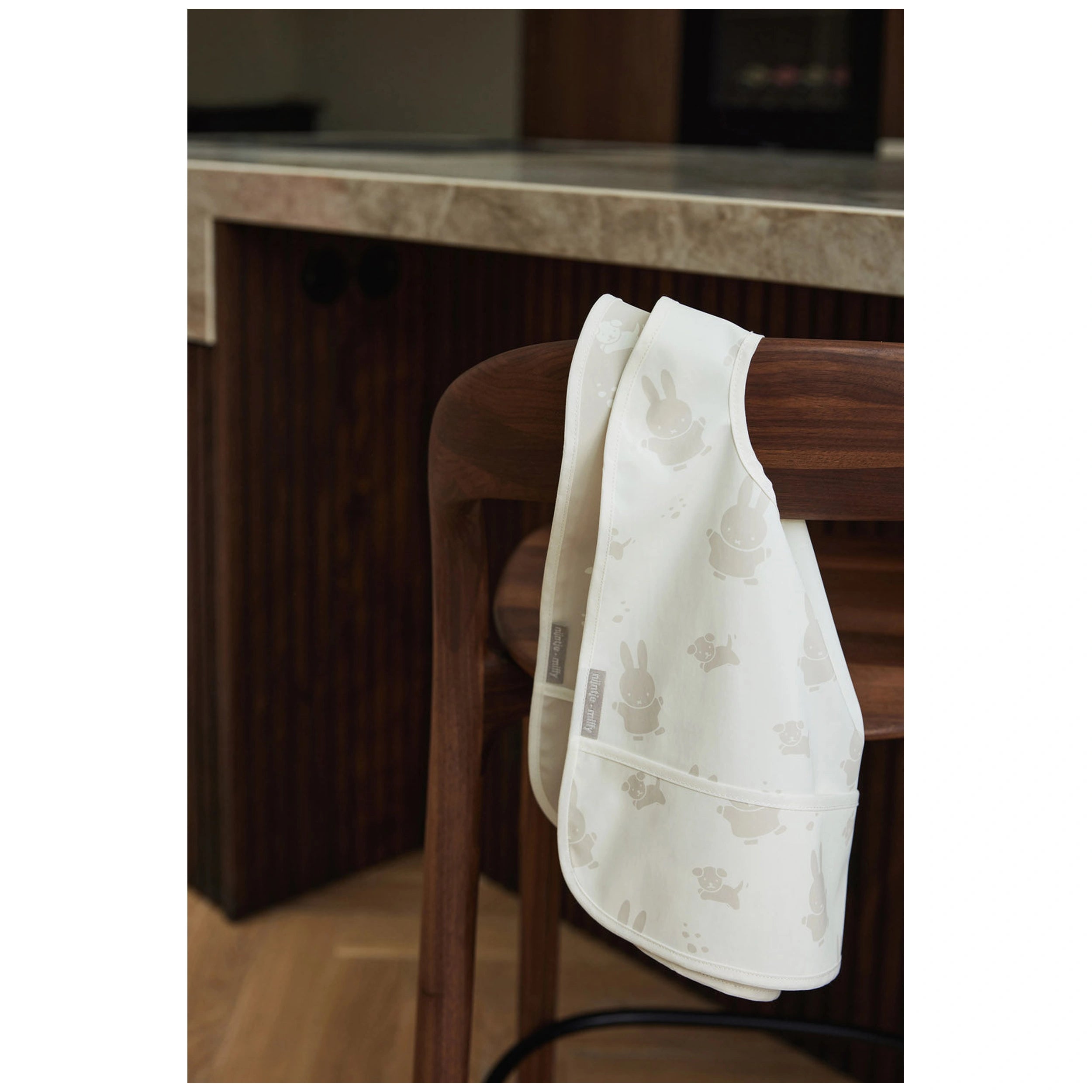 The bib is equipped with a user-friendly velcro fastening at the neck, ensuring a secure fit that can be easily adjusted as your child grows. This feature not only enhances comfort but also allows for quick removal when mealtime is over. The adorable Miffy & Snuffy print adds a whimsical touch, making mealtime more enjoyable for your child. Available in both Olive Green and Nougat, these bibs can complement any baby outfit while keeping your little one stylish.