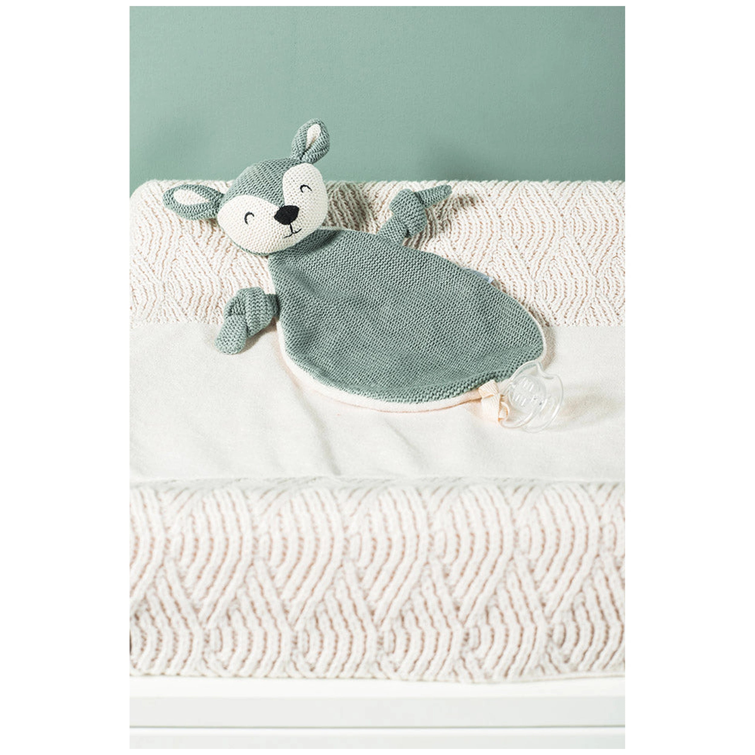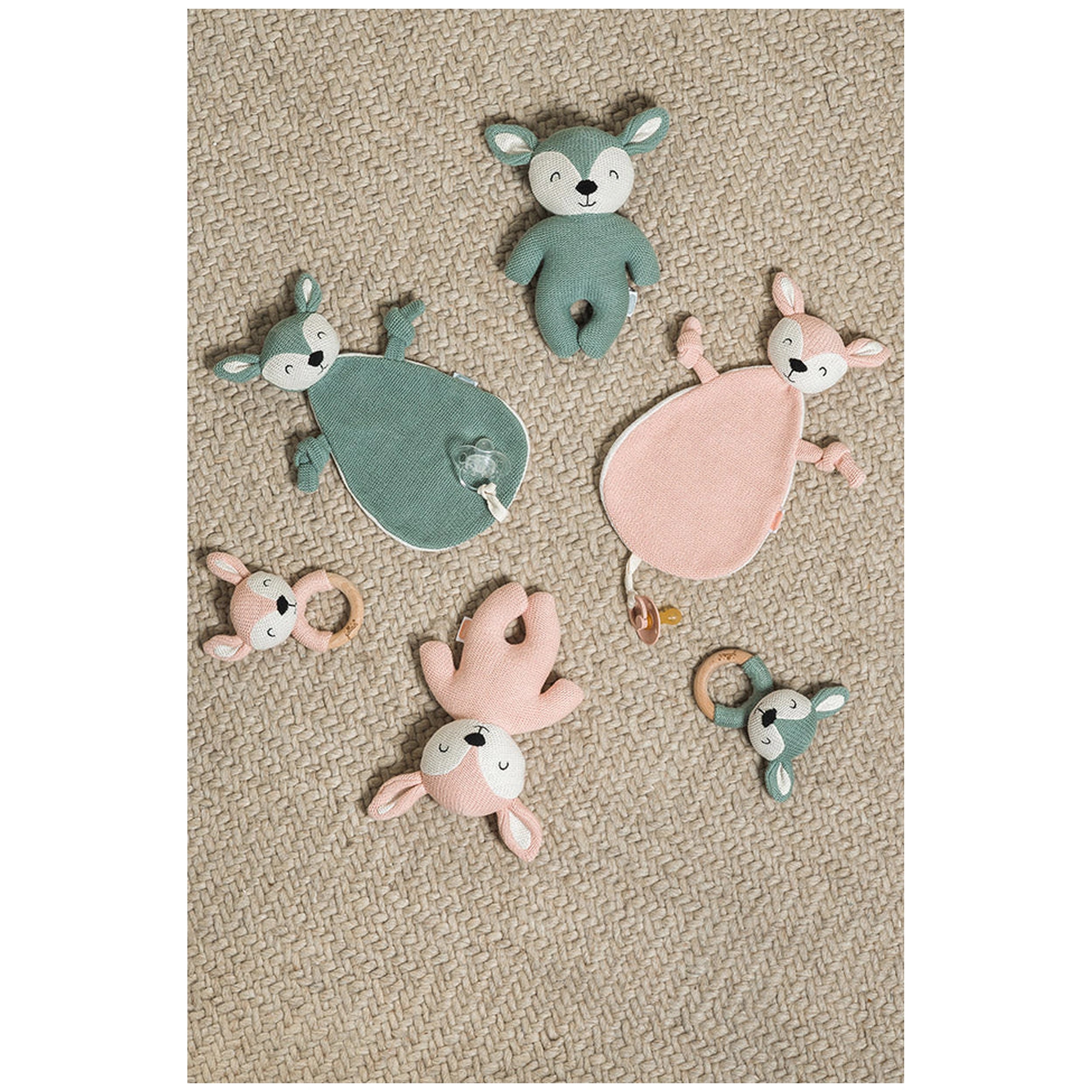 The Jollein Pacifier Cloth features a beautifully knitted front adorned with a cute deer motif, making it visually appealing for both children and parents. Available in soothing colors of green and pink, this cuddle cloth is not only soft to the touch but also designed to engage your child's senses. The back of the cloth is made from plush terry fabric, providing an extra layer of comfort that your baby will love. Measuring 20 cm, it’s the perfect size for tiny hands to grasp and hold onto.