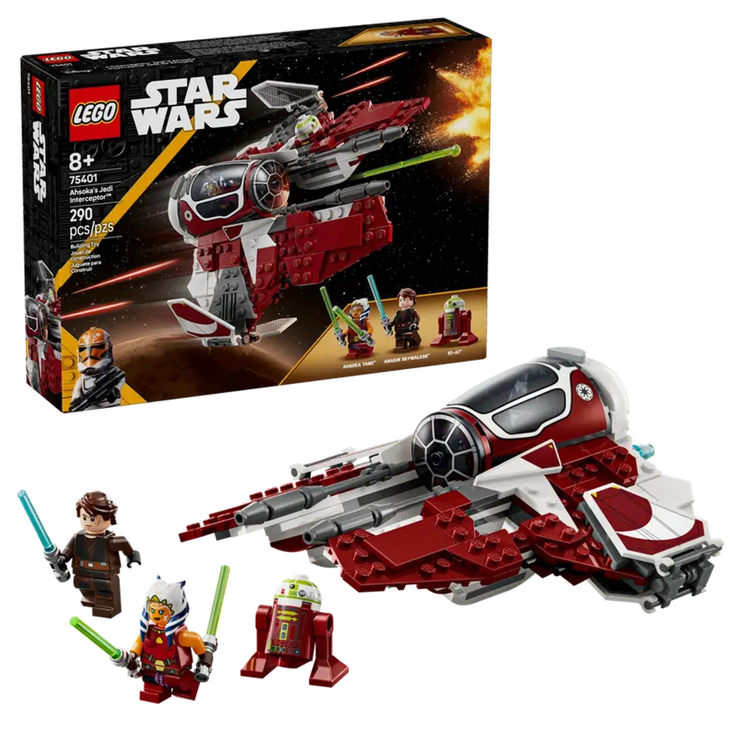 The Ahsoka's Jedi Interceptor set includes everything needed to recreate iconic moments from the series. The starfighter features an opening cockpit that allows Ahsoka Tano to take the pilot's seat, adjustable wings that transition between attack and cruise modes, and two spring-loaded shooters for action-packed play. This attention to detail ensures that every child can immerse themselves in the Star Wars universe, making each play session an exciting adventure.