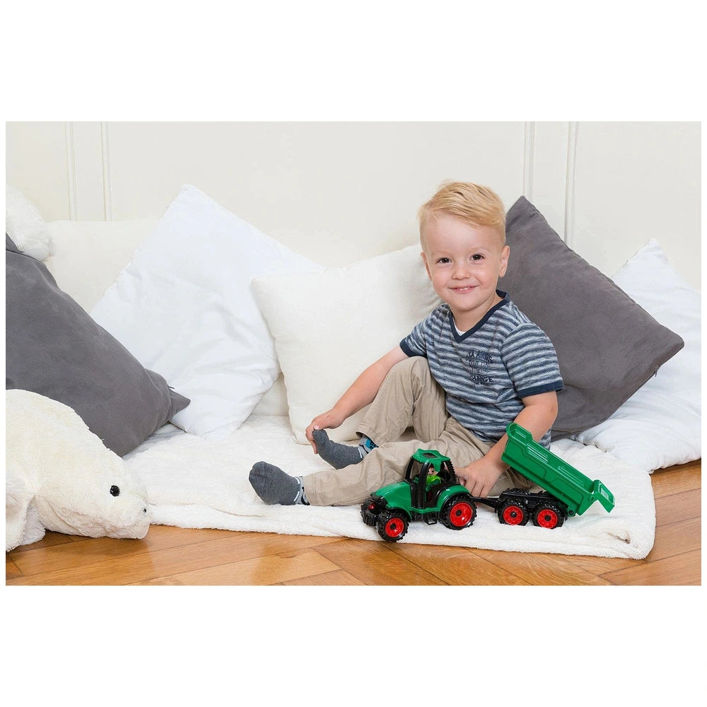 The tractor comes equipped with a tilting driver's cabin, allowing young ones to easily access the interior for role-playing adventures. The functional trailer features a tipping mechanism and a rear hatch, making it perfect for transporting various toys or even small treasures found during playtime. This interactive feature adds an extra layer of excitement, as children can engage in realistic farming scenarios or imaginative journeys across their play area.