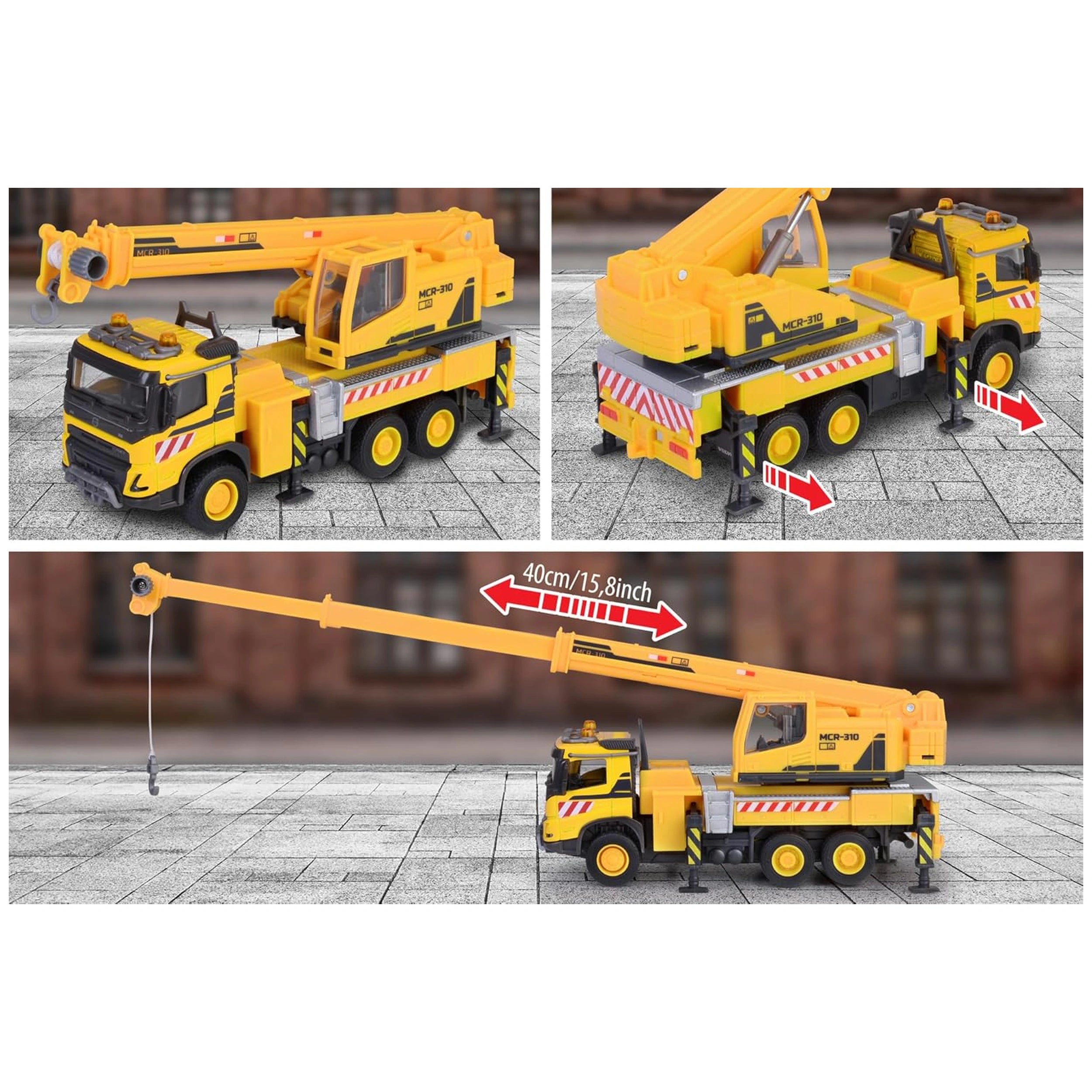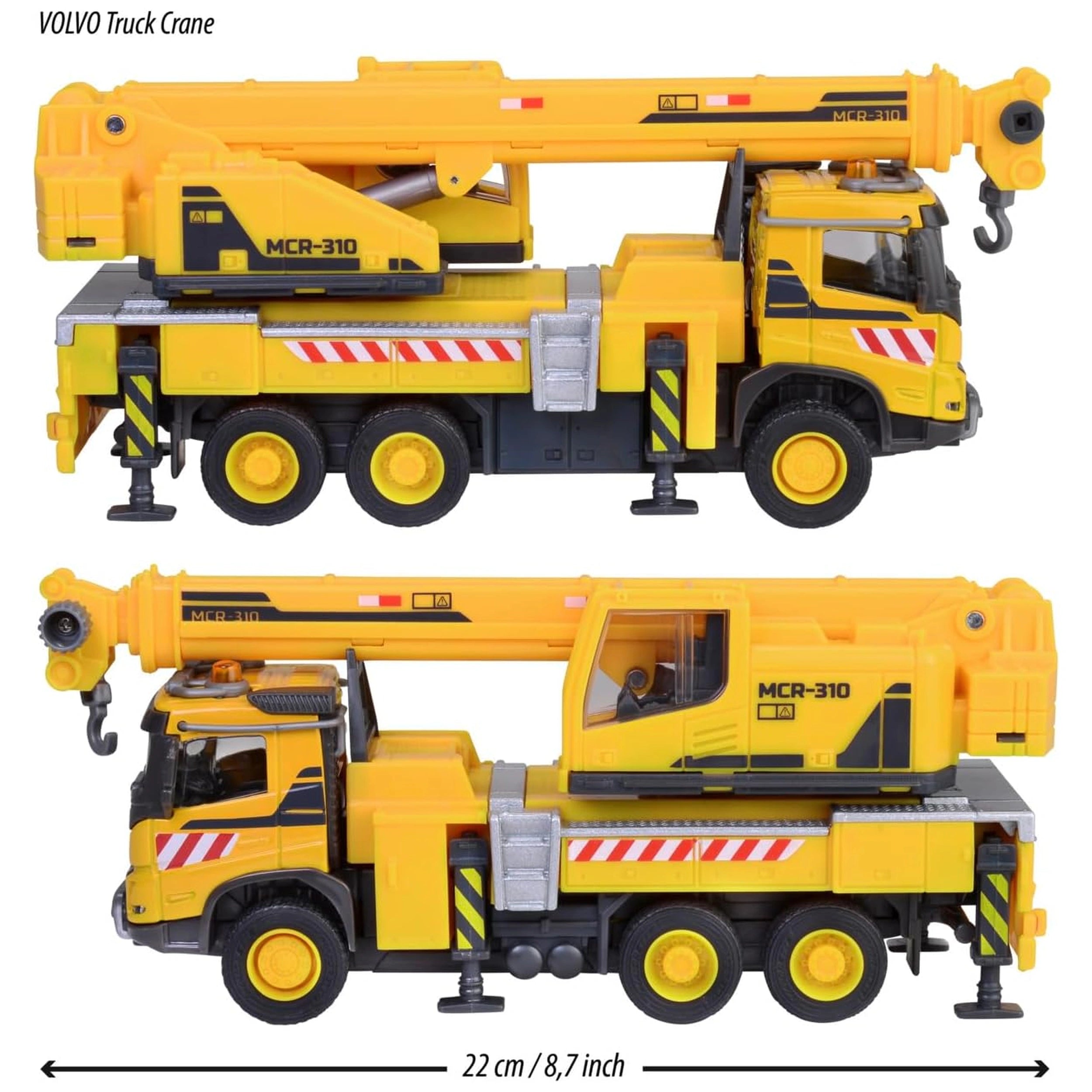 Safety and stability are paramount in the design of the Volvo FMX Truck Crane. Equipped with four fold-out support legs, this construction vehicle remains securely in place while lifting and moving loads. This feature not only enhances the realism of play but also teaches children about the importance of safety in construction environments. As soon as the job is done, the supports retract, and the crane is ready to roll to the next site, making it a versatile toy for aspiring builders.