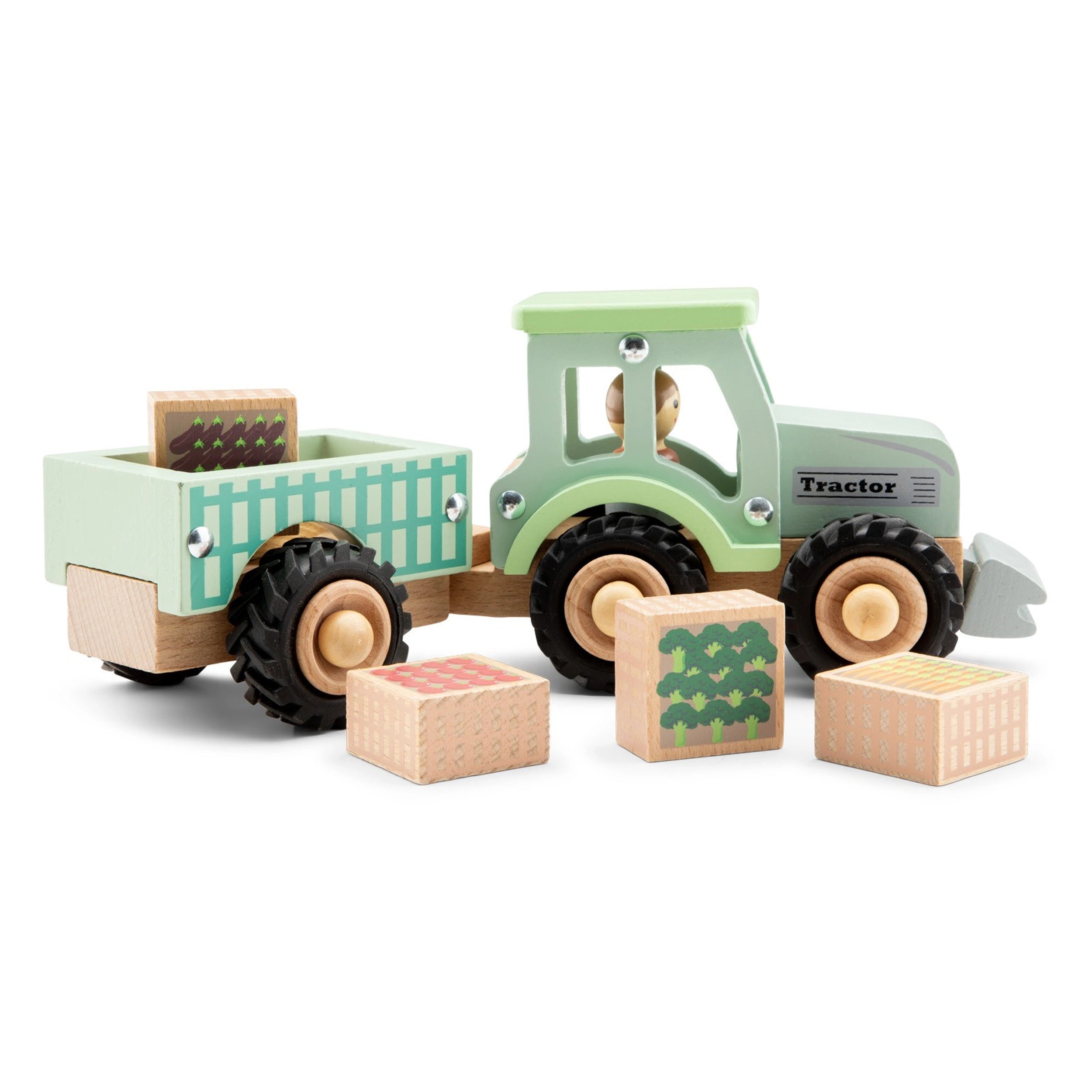 New Classic Toys - Wooden Tractor With Trailer And Vegetables - Play Vehicles