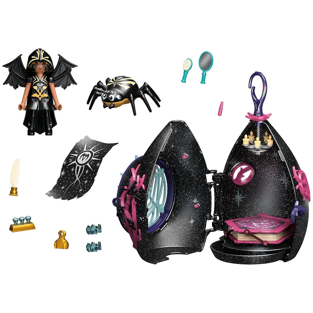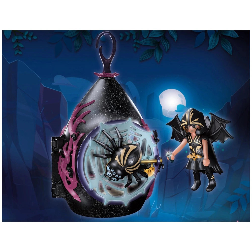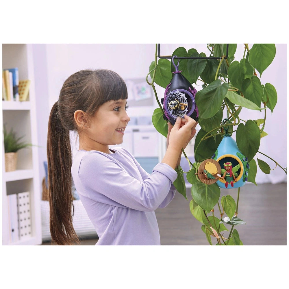 Safety is paramount in the Bat Fairy's world, and her loyal totem animal, a large spider, stands guard outside the spiderweb door. This protective companion ensures that no one dares to steal her precious crystals, providing an exciting narrative element for children to explore. The combination of fantasy and security makes this playset an ideal choice for young adventurers who love to create their own stories.