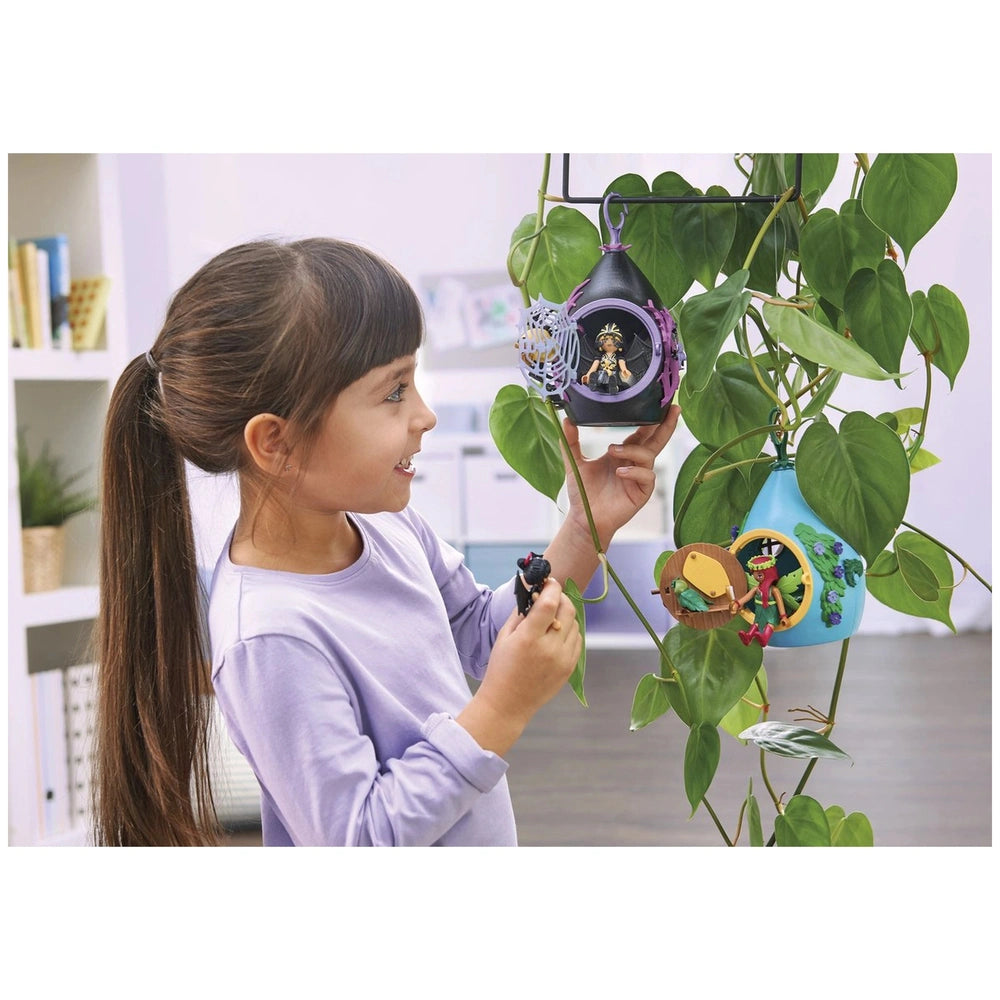 The Bat Fairy House features a unique droplet-shaped structure that adds an element of fantasy to any playtime scenario. Inside, children will find the Bat Fairy diligently studying her magical parchment, pondering where more crystals might be hidden. The set includes three sparkling crystals, a feather, an inkpot, a hairbrush, and a Bat Fairy cape, allowing kids to engage in a variety of magical adventures. The Bat Fairy's wings add a touch of elegance, making her a delightful character for storytelling.