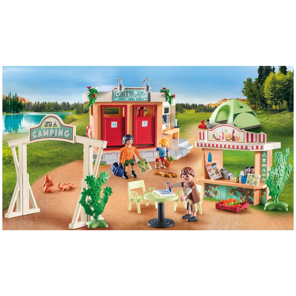 This camping set is perfect for budding adventurers who love the idea of spending time in nature. It features three Playmobil figures, each ready to embark on their camping journey. The inclusion of a clean sanitary building and a kiosk for tasty snacks adds to the realism of the camping experience, encouraging children to role-play various scenarios. Whether it's preparing a meal in the kitchen or enjoying a snack at the kiosk, the possibilities for creative play are endless.