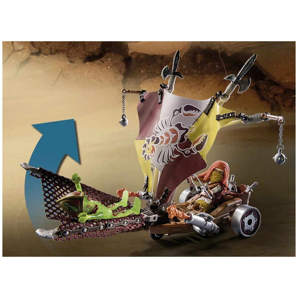 The dune surfer is not just about speed; it is also built for defense. With two rotating cannons positioned on the sides, players can load them with poison projectiles, adding an exciting layer of strategy to their battles. This feature allows children to engage in tactical gameplay, deciding when to attack and when to defend. The foldable safety net at the front of the surfer adds an extra element of surprise, enabling players to capture the unsuspecting skeleton warrior in a thrilling twist of fate.