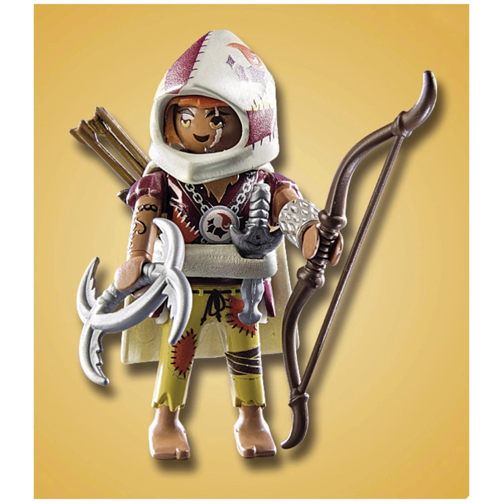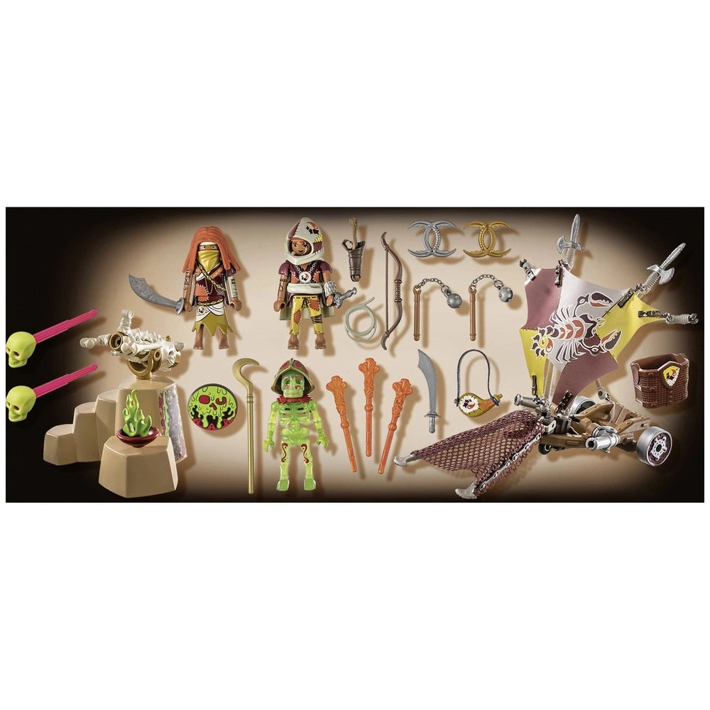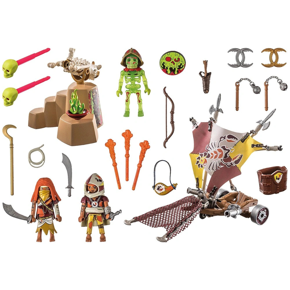 Introducing the Playmobil - Novelmore Sal'Ahari Sands - Battle On Sandle 71026, an exhilarating playset that transports young adventurers into a world of action and strategy. This dynamic set features two agile Ahari warriors who are ready to defend their territory against a fearsome skeleton warrior. With its innovative design and engaging features, this playset promises hours of imaginative play and storytelling.