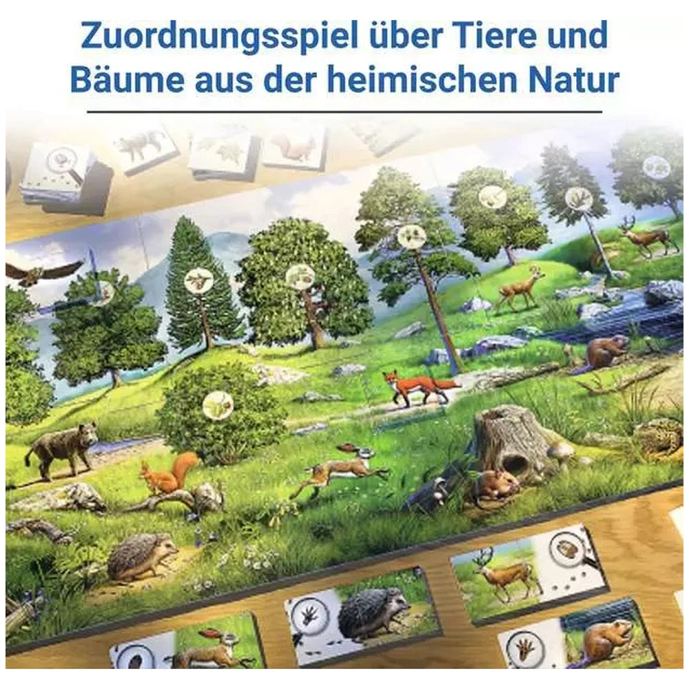 Introducing the Ravensburger - Der Natur Auf Der Spur - Board Game, a captivating educational experience designed to immerse children in the wonders of nature. This German edition board game invites young players to explore the fascinating world of local wildlife and trees found in their forests. As they embark on this adventure, children will learn to identify tracks belonging to various animals such as foxes, deer, and field mice, fostering a sense of curiosity and appreciation for the environment.
