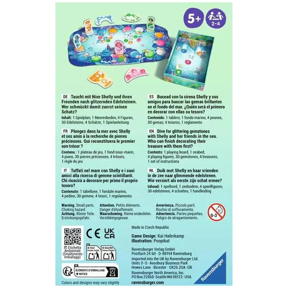 Introducing the Ravensburger Shelly Ocean Board Game, a captivating underwater adventure that invites players to dive into a world of fun and strategy. This enchanting game features the charming mermaid Shelly Ocean and her friends as they embark on a thrilling quest to collect sparkling gemstones hidden in the depths of the sea. Perfect for families and friends, this game combines excitement with skill, making it an ideal choice for game nights or gatherings.