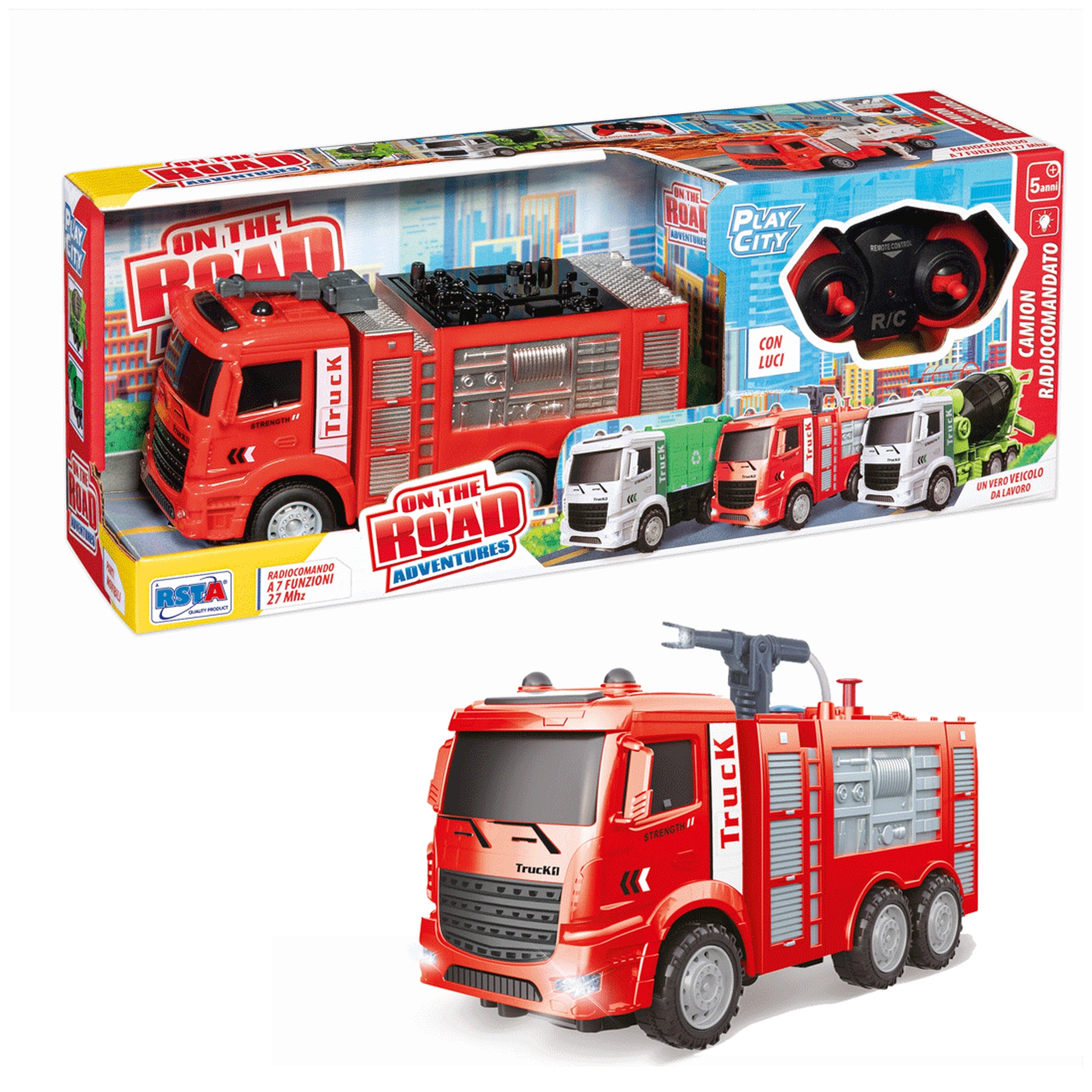 Introducing the RONCHI SUPER TOYS RS Toys - On The Road Adventure Play City RC Fire Truck, a thrilling addition to your child's toy collection that promises to ignite their imagination and inspire heroic play. This remarkable remote-controlled fire truck is designed to provide endless hours of entertainment while encouraging creativity and role-playing. With its striking red color and realistic details, this fire truck is not just a toy; it’s an invitation to embark on exciting rescue missions.