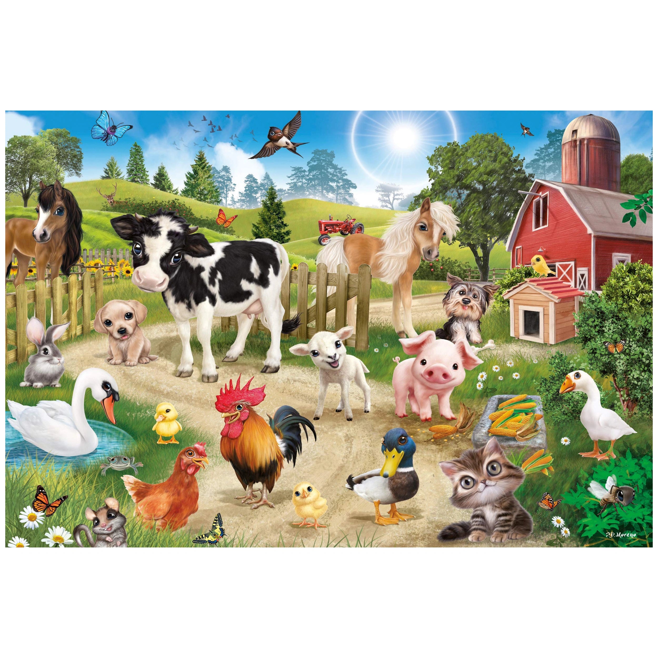 As you dive into the bustling world of this farm animal puzzle, each piece reveals delightful details that capture the essence of farm life. From playful puppies and curious kittens to gentle cows and proud roosters, the vivid colors and charming illustrations breathe life into the puzzle. The thoughtfully designed 60-piece format is accessible for young children, allowing them to experience the joy of completing the puzzle and fostering a sense of accomplishment. The detailed depiction of the farm environment not only makes the puzzle-solving experience visually stimulating but also serves as an educational tool, introducing children to the wonders of animals and nature.