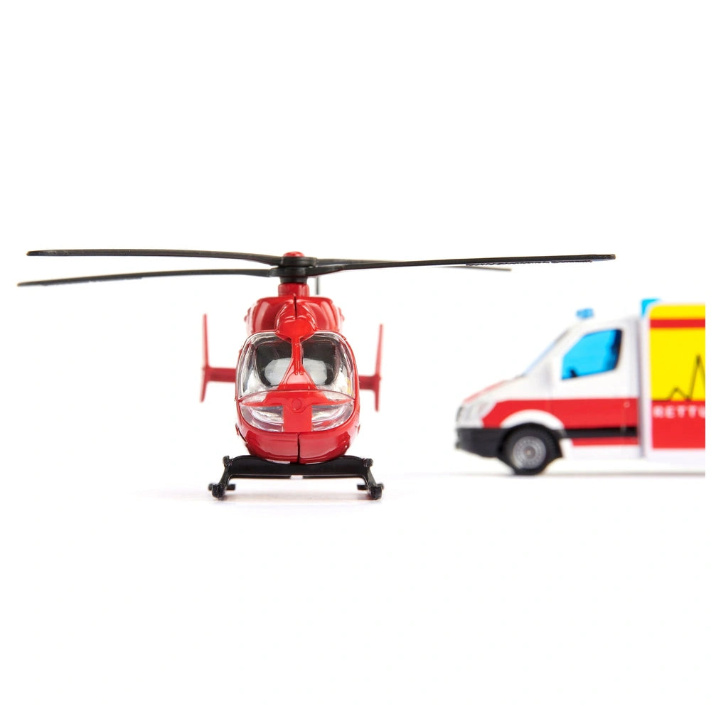 Introducing the Siku - Mercedes-Benz Ambulance and Helicopter Play Vehicles, a captivating play set designed to ignite the imaginations of young adventurers. This exceptional collection features a meticulously crafted Mercedes-Benz ambulance alongside a Eurocopter EC 145 helicopter, providing endless opportunities for children to engage in thrilling rescue missions. Each vehicle is designed with attention to detail, ensuring that little ones can experience the excitement of emergency services right in their own playroom.