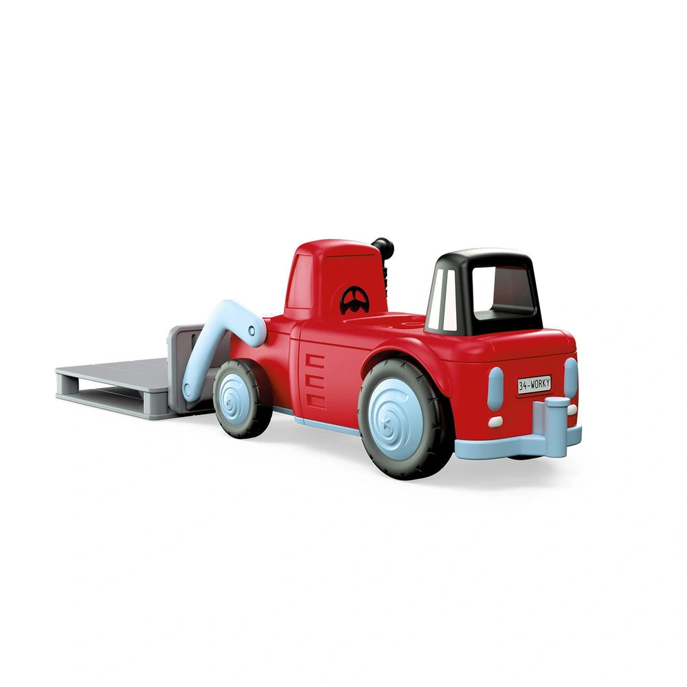 The Willy Worky set is crafted with high-quality materials, ensuring durability and safety for little hands. Willy is designed with movable parts, allowing children to position him in various poses, enhancing the interactive play experience. Worky, equipped with a friction motor, encourages fine motor skills as children push and pull him across different surfaces. The tactile elements of the vehicles stimulate sensory exploration, making playtime both fun and educational.